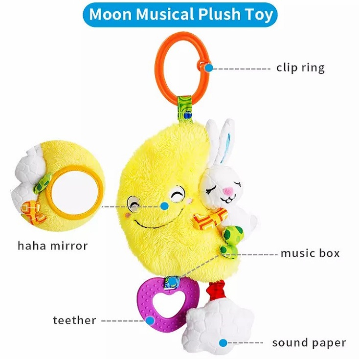 اویز طرح ماه برند محبوب و معروف جولی بیبی برای استفاده برروی دسته کالسکه و کریر و تخت کودک است و از پارچه ضدحساسیت و سازگار برای کودکان ساخته شده است