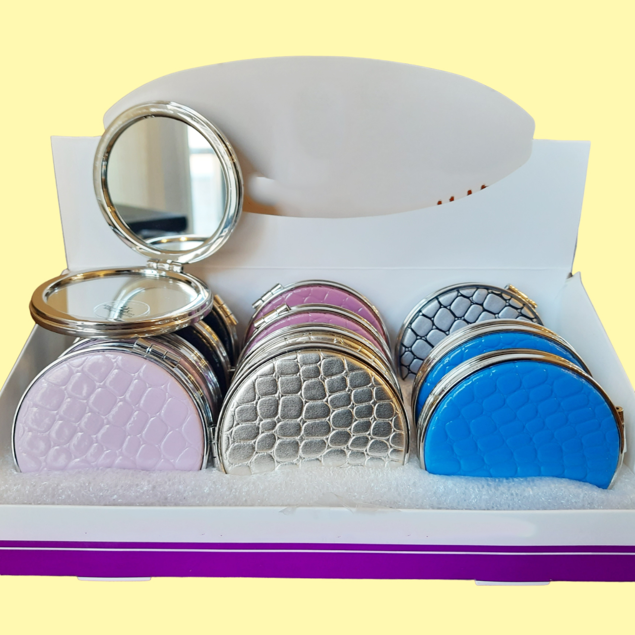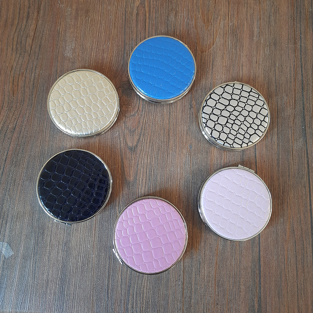 آینه دو طرفه و تاشوی حال حاضر از جمله باکیفیت ترین آینه های جیبی و ارایشی میباشد که دارای رویه دو طرف چرمی با رنگ بندی زیبا و متنوع است. یک سویه این اینه خاص دارای آینه عادی و باکیفیت میباشد و یک طرف دیگر ان دارای بزرگنمایی دوبرابری است. این اینه بصورت اهرمی و فوق العاده روان باز و بسته میشود و دارای حاشیه استیل زیبا و براق میباشد که جلوه ی بسیار خاص و چشم نوازی را به ان میبخشد.