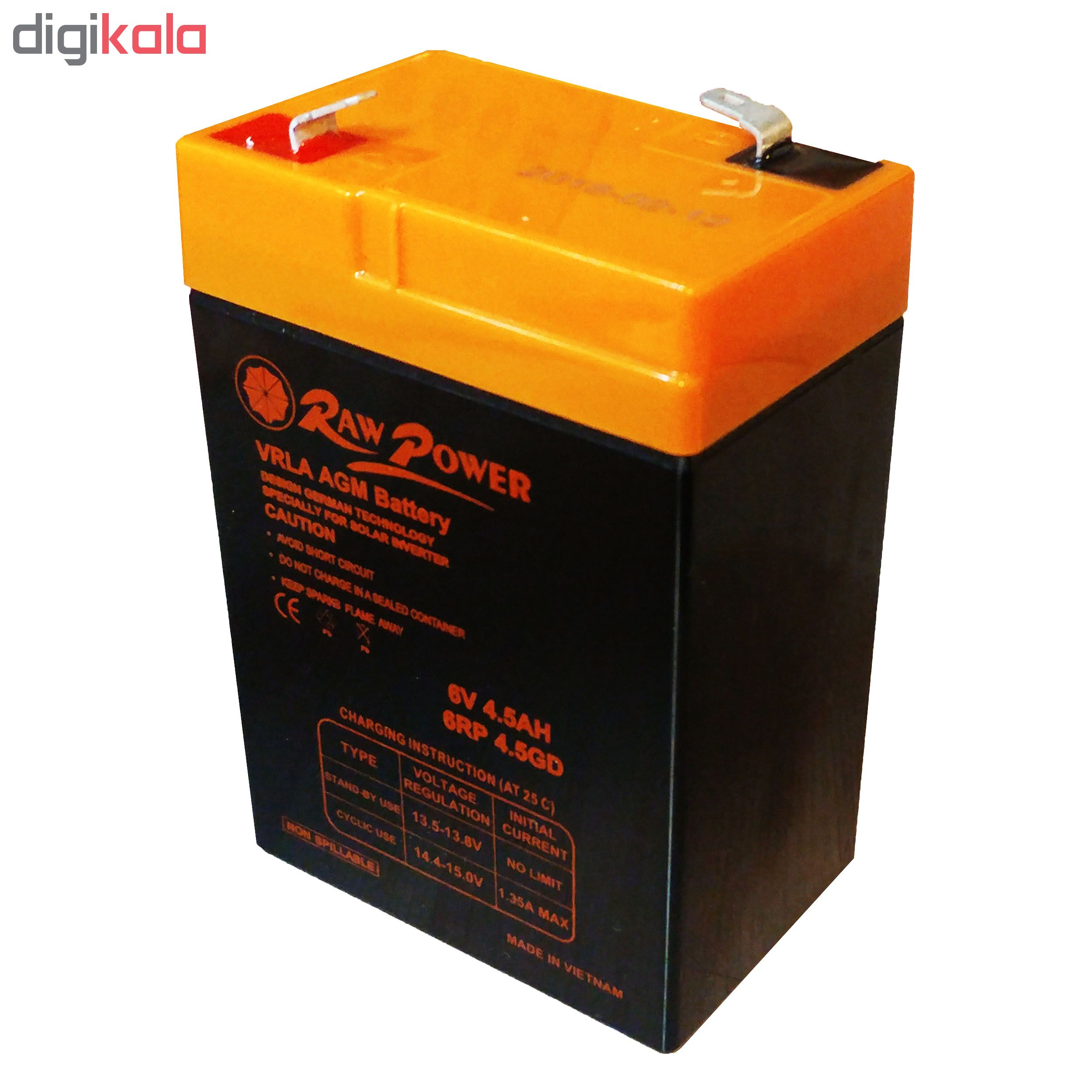 این محصول باتری ۶ ولت ۴.۵ آمپر از شرکت Raw Power با تکنولوژی ساخت سیلد اسید و ساخت کشور ویتنام می باشد . مصارف این باتری درماشین های شارژی، اسباب بازی های شارژی،دوچرخه شارژی،اسکوتر برقی، برق اضطراری و چراغ های صنعتی و … میباشد. برای افزایش طول عمر این نوع باتریها از لحیمکاری ترمینالهای باتری خودداری نموده و همچنین اگر به مدت طولانی از دستگاه خود استفاده نمیکنید، باتری را از دستگاه جدا نمائید.وزن تقریبی آن در حدود محصول فوق از کیفیت بسیار خوبی برخوردار است . یکی از شاخص های بسیار مهم در کیفیت باتری ، بالابودن وزن آن است. که باتری فوق در حدود ۷۶۰ گرم وزن دارد و این میزان وزن در مقایسه با باتری های دیگر که همین ولتاژ و همین آمپر را دارند ، در رتبه بسیار خوبی قرار میگیرد.