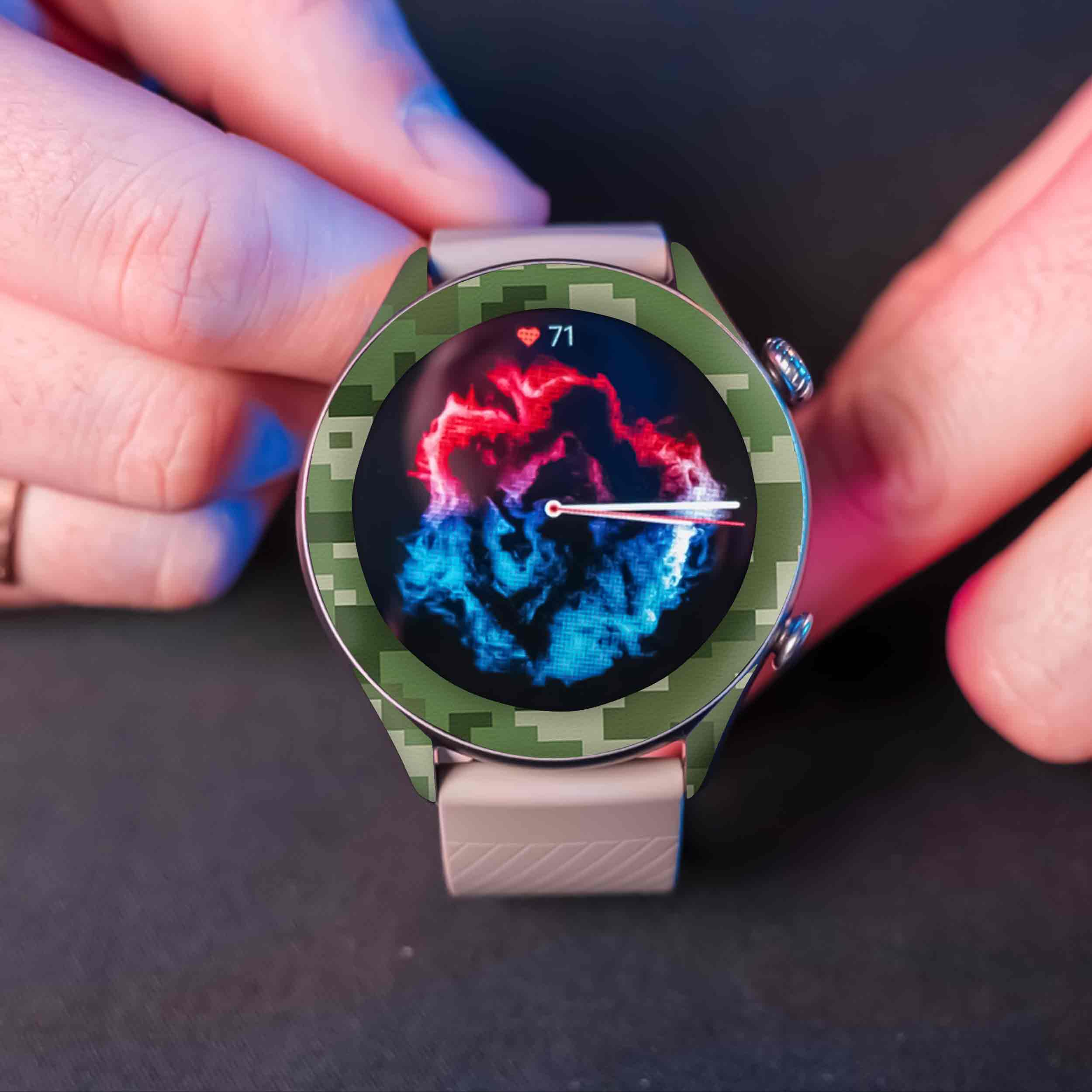 طرح لباس ارتش در رنگ سبز با نام فرم ارتش پیکسل جنگل، محصولِ برند ماهوت میباشد.در توضیح ساختار فنی برچسب طرح ساعت هوشمند ماهوت میتوان گفت تصویر بر روی لایه اولِ برپوش، مستقیما با یک تکنیک منحصربفرد چاپ میشود. همچنین بخش چسبنده دارای تکنولوژی Bubble Free است که نصب را آسان و چسبندگی را حداکثر میکند و هیچ اثری از چسب، بر روی ساعت هوشمند باقی نمیگذارد. در لایه دوم یک ورق لمینت گرم، با دستگاههای مخصوص در دمای بالا بر روی لایه اول اعمال می شود تا مقاومت در برابر مواد شیمیایی و خط و خش و آب خوردگی حداکثر شود. این محصول نوعی استیکر(برچسب) چندلایه است و به منظور پوشش تمامی وجوه ساعت هوشمند ساخته شده است و کنارههای دستگاه را هم پوشش میدهد. هدف استفاده از آن ایجاد طرح، رنگ و احساسی نو برای دستگاه هوشمند است در حالی که زبان طراحی و ظرافت ساعت هوشمند حفظ شود. لازم به ذکر است که برچسب پوششی ماهوت با وجود چسبندگی بالا هیچی اثری از خود هنگام جدا شدن برجای نمیگذارد. همچنین جنس این محصول از پلیکربنات است و این ماده تاثیر قابل توجهی بر روی آنتن دهی و یا دفع حرارت دستگاه نخواهد داشت. داخل جعبه محصول دو سری برپوش قرار داده شده است تا عمر استفاده از محصول بالا برود.