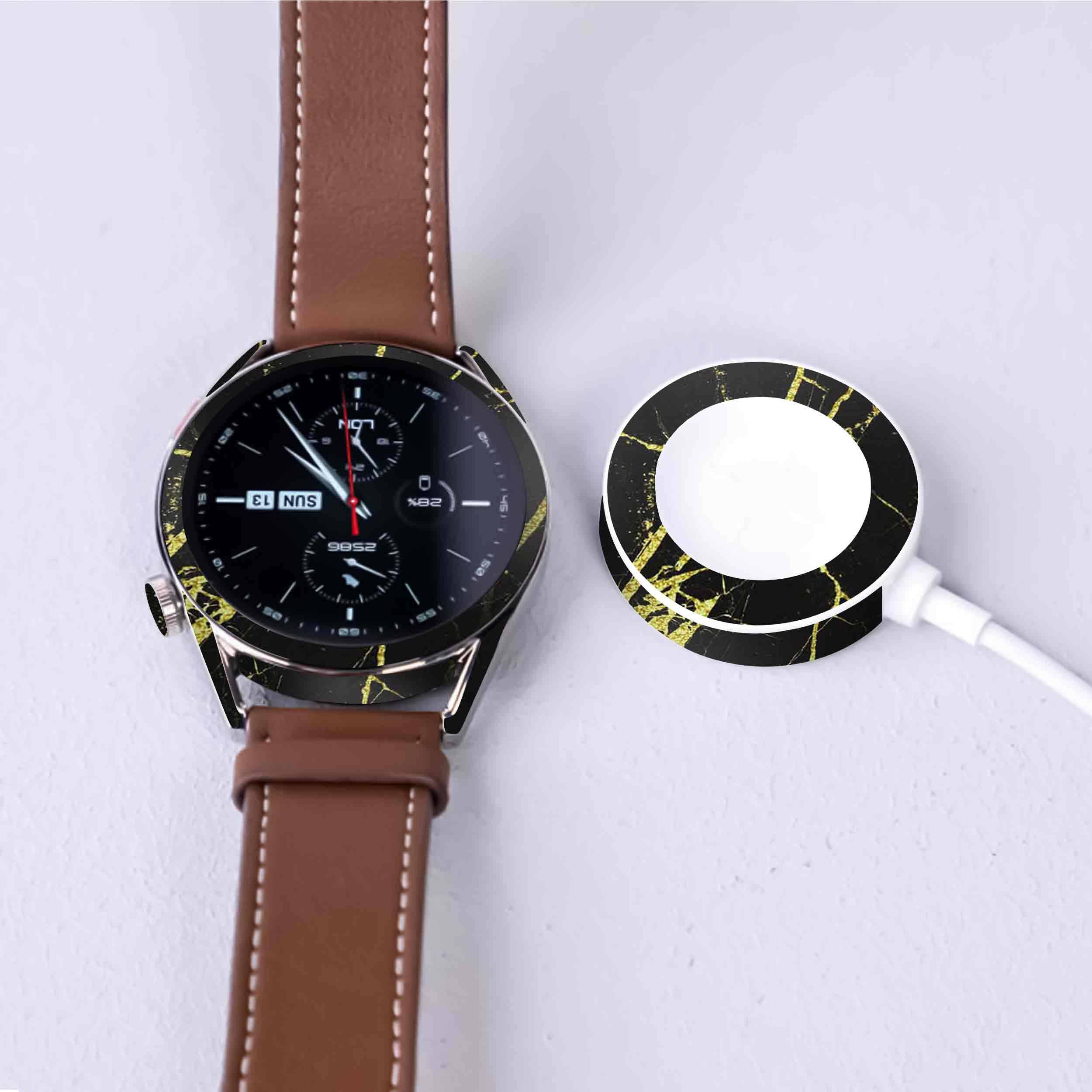 طرح مرمر گرافیت طلایی، محصولِ برند ماهوت میباشد. در توضیح ساختار فنی برچسب طرح ساعت هوشمند ماهوت میتوان گفت تصویر بر روی لایه اولِ برپوش، مستقیما با یک تکنیک منحصربفرد چاپ میشود. همچنین بخش چسبنده دارای تکنولوژی Bubble Free است که نصب را آسان و چسبندگی را حداکثر میکند و هیچ اثری از چسب، بر روی ساعت هوشمند باقی نمیگذارد. در لایه دوم یک ورق لمینت گرم، با دستگاههای مخصوص در دمای بالا بر روی لایه اول اعمال می شود تا مقاومت در برابر مواد شیمیایی و خط و خش و آب خوردگی حداکثر شود. این محصول نوعی استیکر(برچسب) چندلایه است و به منظور پوشش تمامی وجوه ساعت هوشمند ساخته شده است و کنارههای دستگاه را هم پوشش میدهد. هدف استفاده از آن ایجاد طرح، رنگ و احساسی نو برای دستگاه هوشمند است در حالی که زبان طراحی و ظرافت ساعت هوشمند حفظ شود. لازم به ذکر است که برچسب پوششی ماهوت با وجود چسبندگی بالا هیچی اثری از خود هنگام جدا شدن برجای نمیگذارد. همچنین جنس این محصول از پلیکربنات است و این ماده تاثیر قابل توجهی بر روی آنتن دهی و یا دفع حرارت دستگاه نخواهد داشت. داخل جعبه محصول دو سری برپوش قرار داده شده است تا عمر استفاده از محصول بالا برود.