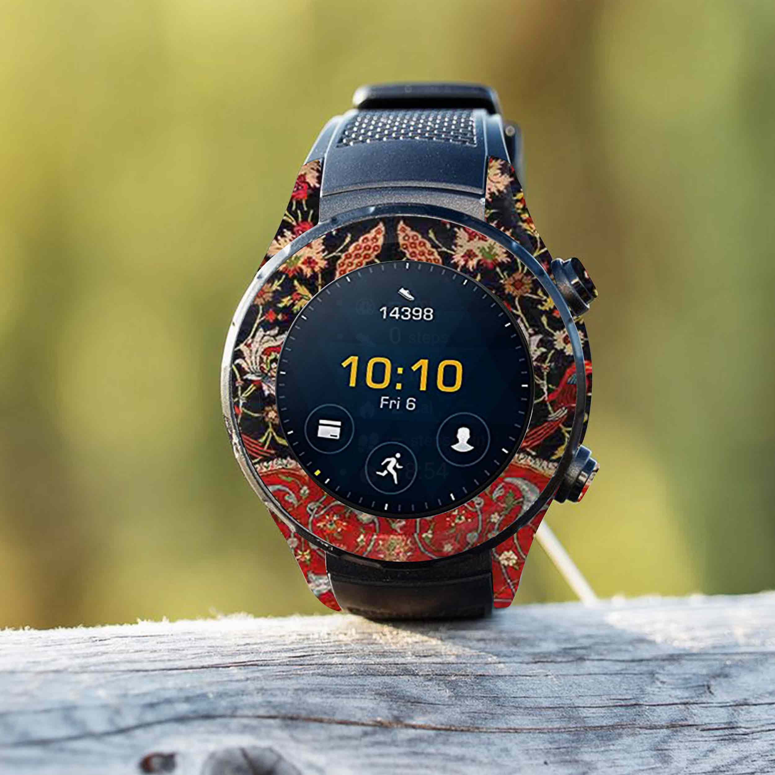 طرح فرش ایران۶، محصولِ برند ماهوت میباشد.در توضیح ساختار فنی برچسب طرح ساعت هوشمند ماهوت میتوان گفت تصویر بر روی لایه اولِ برپوش، مستقیما با یک تکنیک منحصربفرد چاپ میشود. همچنین بخش چسبنده دارای تکنولوژی Bubble Free است که نصب را آسان و چسبندگی را حداکثر میکند و هیچ اثری از چسب، بر روی ساعت هوشمند باقی نمیگذارد. در لایه دوم یک ورق لمینت گرم، با دستگاههای مخصوص در دمای بالا بر روی لایه اول اعمال می شود تا مقاومت در برابر مواد شیمیایی و خط و خش و آب خوردگی حداکثر شود. این محصول نوعی استیکر(برچسب) چندلایه است و به منظور پوشش تمامی وجوه ساعت هوشمند ساخته شده است و کنارههای دستگاه را هم پوشش میدهد. هدف استفاده از آن ایجاد طرح، رنگ و احساسی نو برای دستگاه هوشمند است در حالی که زبان طراحی و ظرافت ساعت هوشمند حفظ شود. لازم به ذکر است که برچسب پوششی ماهوت با وجود چسبندگی بالا هیچی اثری از خود هنگام جدا شدن برجای نمیگذارد. همچنین جنس این محصول از پلیکربنات است و این ماده تاثیر قابل توجهی بر روی آنتن دهی و یا دفع حرارت دستگاه نخواهد داشت. داخل جعبه محصول دو سری برپوش قرار داده شده است تا عمر استفاده از محصول بالا برود.