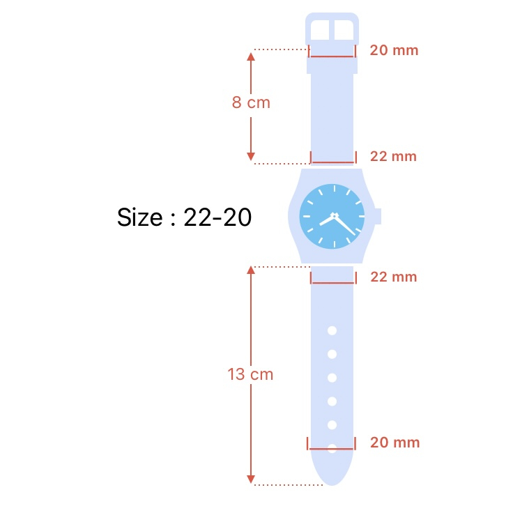 »قبل از خرید به اندازههای بند و ساعت خود دقت کنید و در صورت مغایرت، سایز مناسب ساعت خود را جستجو کنید.سایز این مدل ۲۲/۲۰ است.
