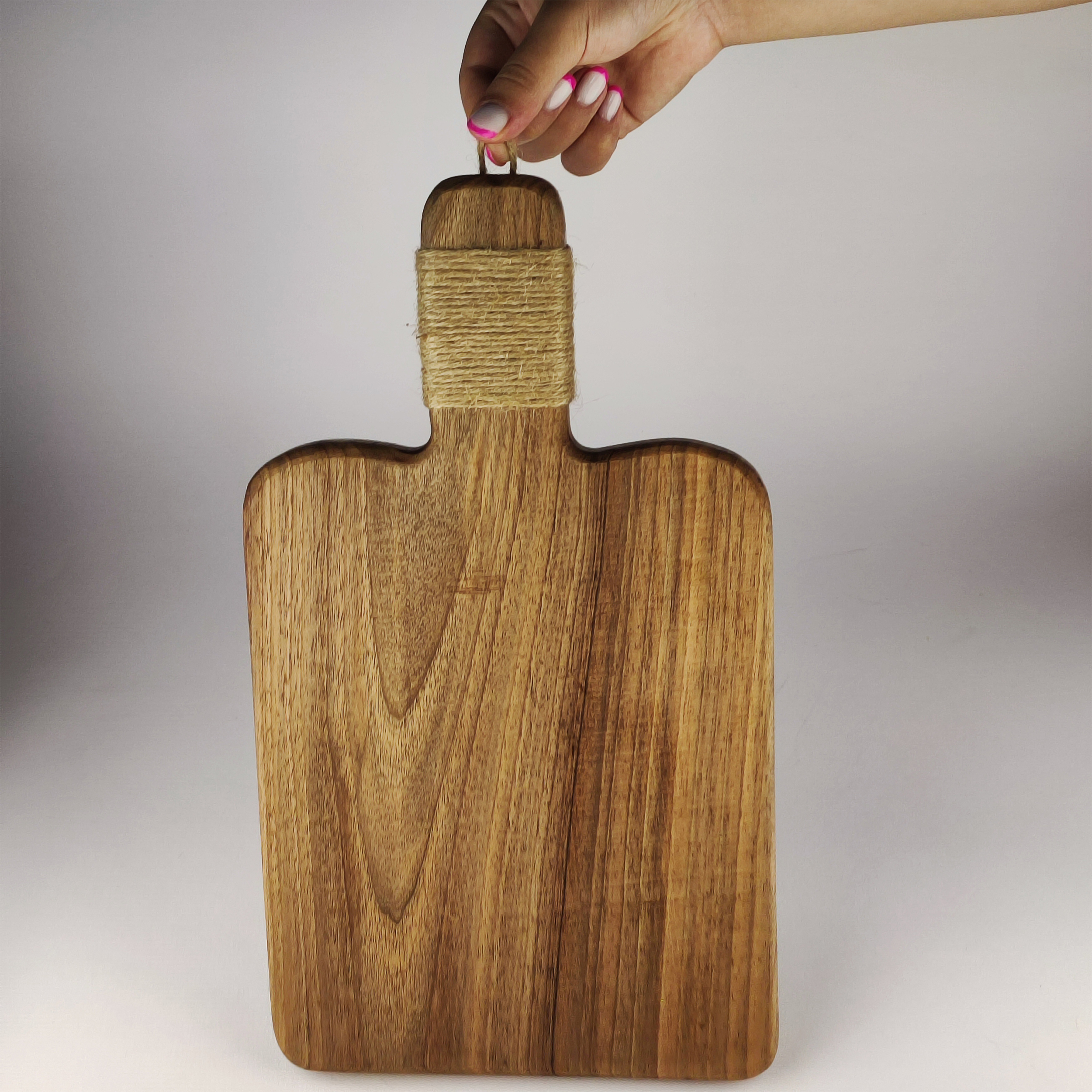 ظروف سرو و پذیرایی از لازمه های هر آشپزخانه ای می باشد که با متریال های مختلفی قابل ساخت است.یکی از بهترین متریال ها برای ساخت این محصولات چوب می باشد زیرا از مقاومت بالایی در برابر ضربه برخوردار است ، حالت طبیعی داشته و ضرری برای مصرف کننده ندارد ، زیبایی نقش چوب و وزن کم آن از دلایل استفاده این متریال می باشد. این محصول دارای یک دسته می باشد که جا به جا کردن آن را بسیار راحت تر کرده و با بند های کنفی پوشش داده شده تا علاوه بر مقاومت آن ، زیبایی محصول را هم دو چندان کرده است.یکی از دلایل دیگری که از بنده های کنفی در این محصول استفاده شده این بوده که از تعریق دست و سر خوردن محصول جلوگیری شود. چوب بر خلاف ام دی اف از مقاومت بالایی در برابر رطوبت برخوردار می باشد اما برای آبگریز شدن و مقاومت بیشتر ، از روکش هایی برای تخته سرو استفاده می شود که مجموعه ما از روغن های گیاهی با کیفیت بالا استفاده می کند تا هر گونه ضرر را برای مصرف کننده کاهش دهد و به دلیل آبگریز شدن محصول دوام آن هم افزایش پیدا می کند. همانطور از عکس محصول مشخص می باشد جنس بدنه این کالا از چوب گردو بوده که یکی از با کیفیت ترین چوب های موجود می باشد و این امر باعث شده تا این محصول به سادگی آسیب نبیند و تا مدت های طولانی از استفاده از آن لذت ببرید. یکی از نکاتی که باعث ماندگاری محصول می شود طریقه صحیح شست و شو می باشد.برای شستن این محصول به هیچ عنوان از مواد شوینده استفاده نکنید و کافی است با دست و آب سطح محصول را تمیز کنید و بعد از آبکشی با یک پارچه آن را خشک کنید و مستقیم داخل کابینت قرار ندهید تا رطوبت خود را کامل از دست بدهد. اکثر محصولاتی که در بازار موجود می باشند از پرس شدن تکه های چوب به وجود آمده که دو مشکل عمده را به همراه خود دارد.جدا شدن چوب ها از محل پرس باعث آسیب دیدن محصول می شود و چسب های آن در آب حل شده و این امر در دراز مدت باعث آسیب هایی به شما می شود و مجموعه ما برای جلوگیری از این امر تمامی محصولات خود را از چوب های یک تکه درست کرده تا هیچگونه مشکلی برای شما ایجاد نشود و تمامی منافذ این محصولات را با ترکیب چسب های ضدآب و خورده های چوب پر کرده ایم تا سطحی هموار و یک دست در شما قرار دهیم.