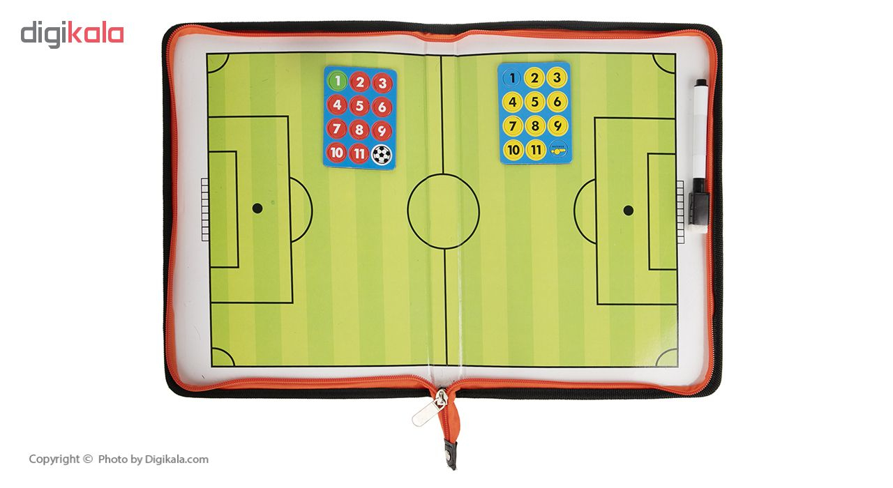 - سایر توضیحات- تخته کوچ (مربیگری) مناسب برای ورزش فوتبال - دارای یک ماژیک به طول 9 سانتیمتر - دارای یک اسفنج به ابعاد 1 × 1 × 4 سانتیمتر برای پاک کردن ماژیک از روی تخته - دارای 24 عدد مهره به قطر 1.3 سانتیمتر - مهرهها دارای آهنربا برای چسبیدن به تخته
