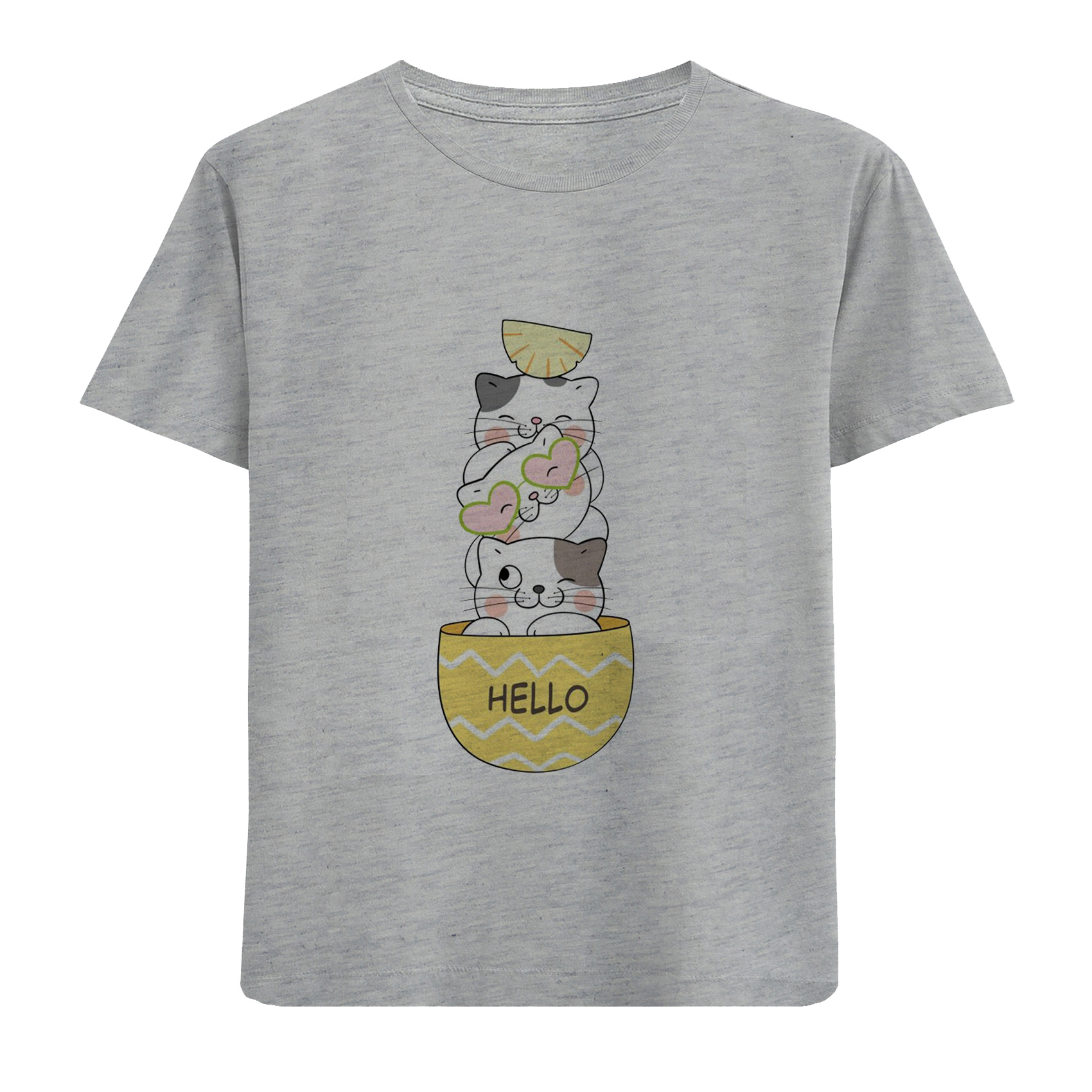 تی شرت آستین کوتاه دخترانه مدل بچه گربه D239