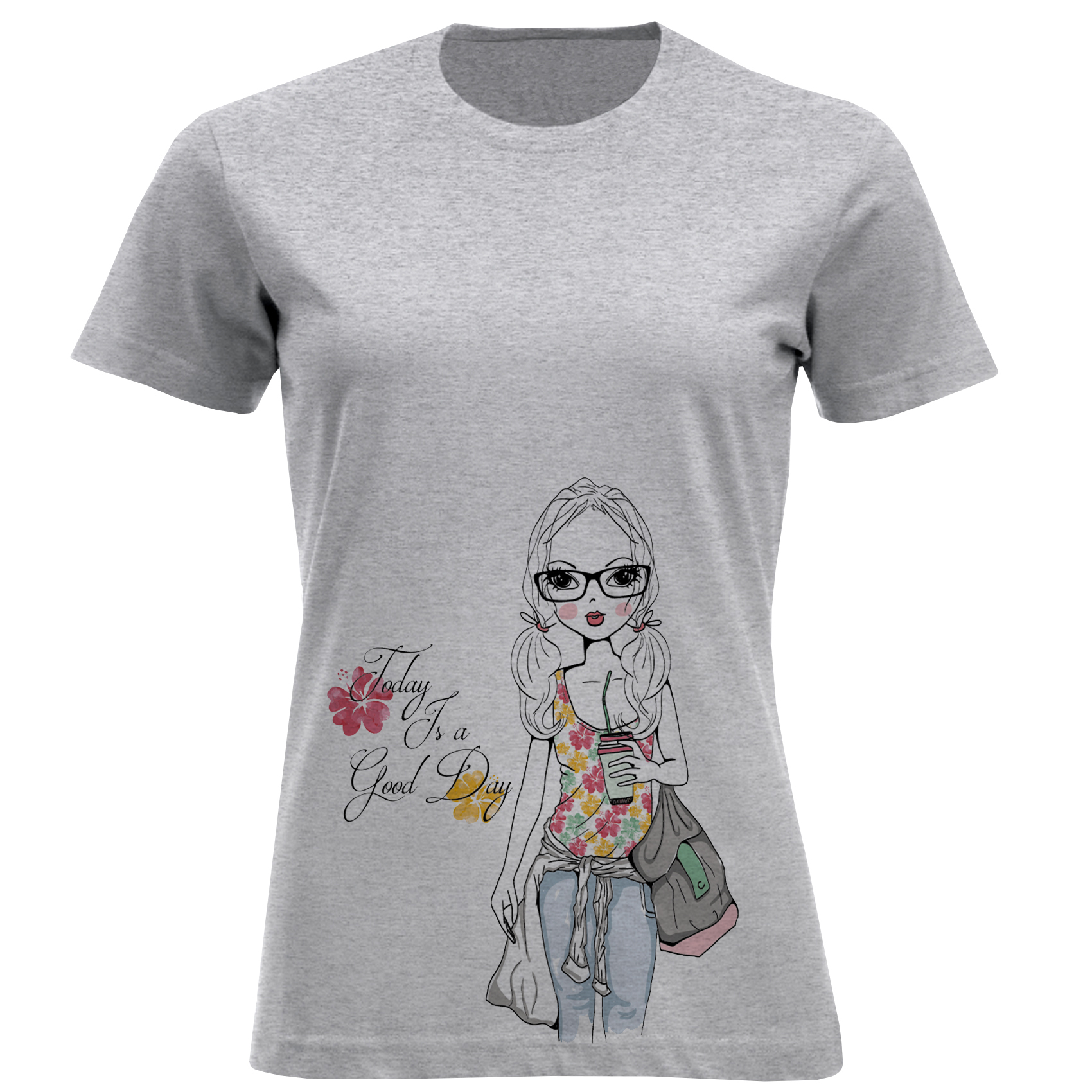 تی شرت آستین کوتاه زنانه مدل دخترعینکی D983