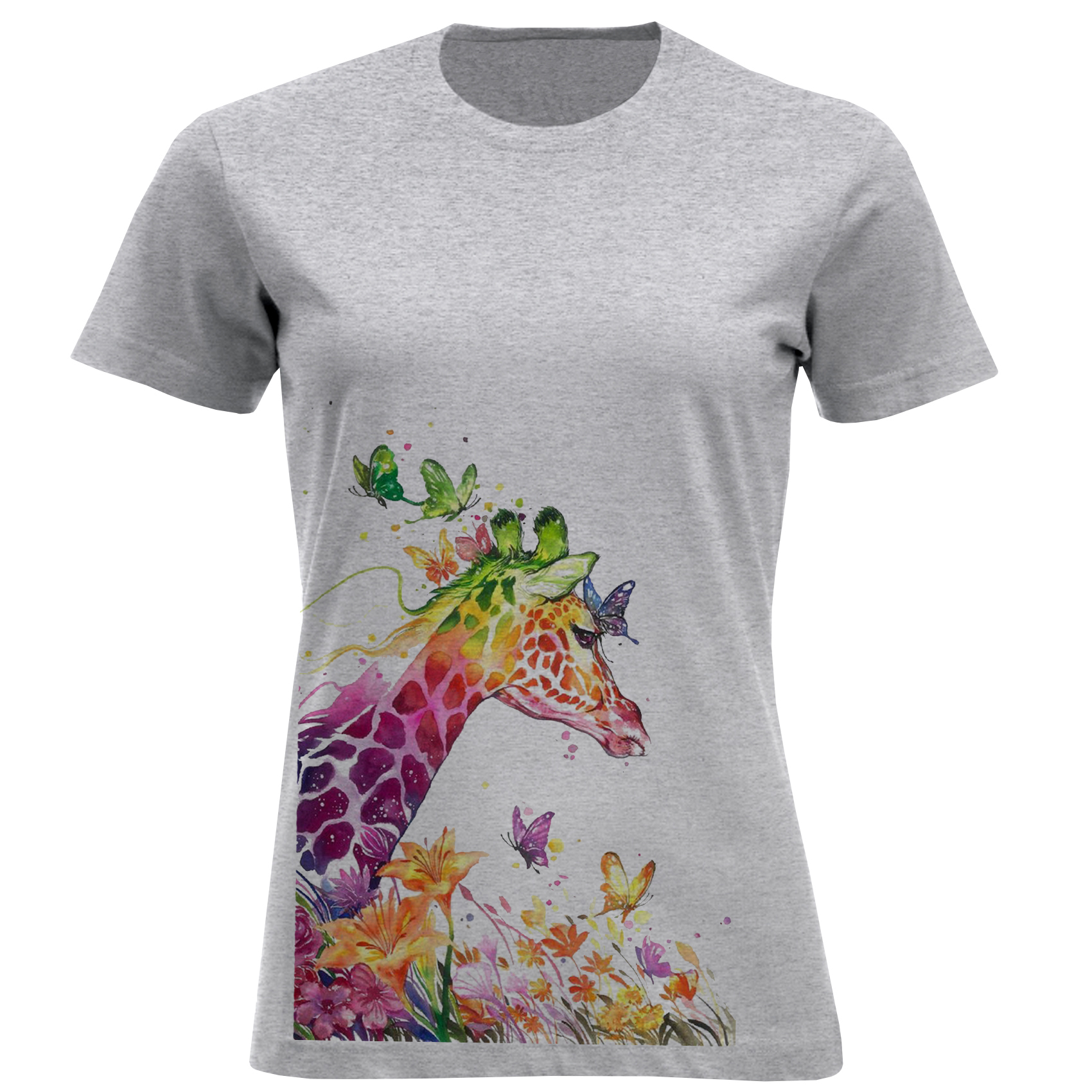 تی شرت آستین کوتاه زنانه مدل زرافه D986