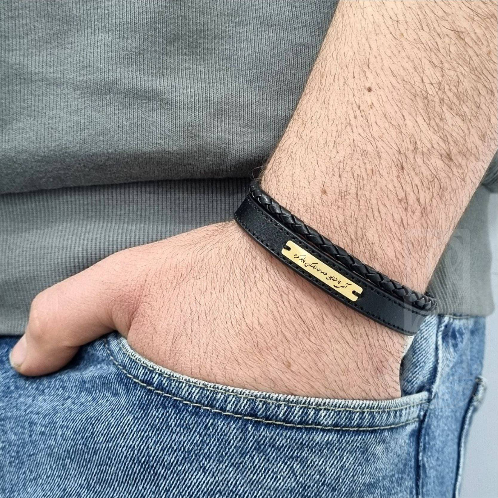 دستبند طلا و چرم با شعر (آری تا شقایق هست زندگی باید کرد) از (سهراب سپهری), کاری از سری اکسسوریهای شعر مردانه گروه لیردا می باشد.