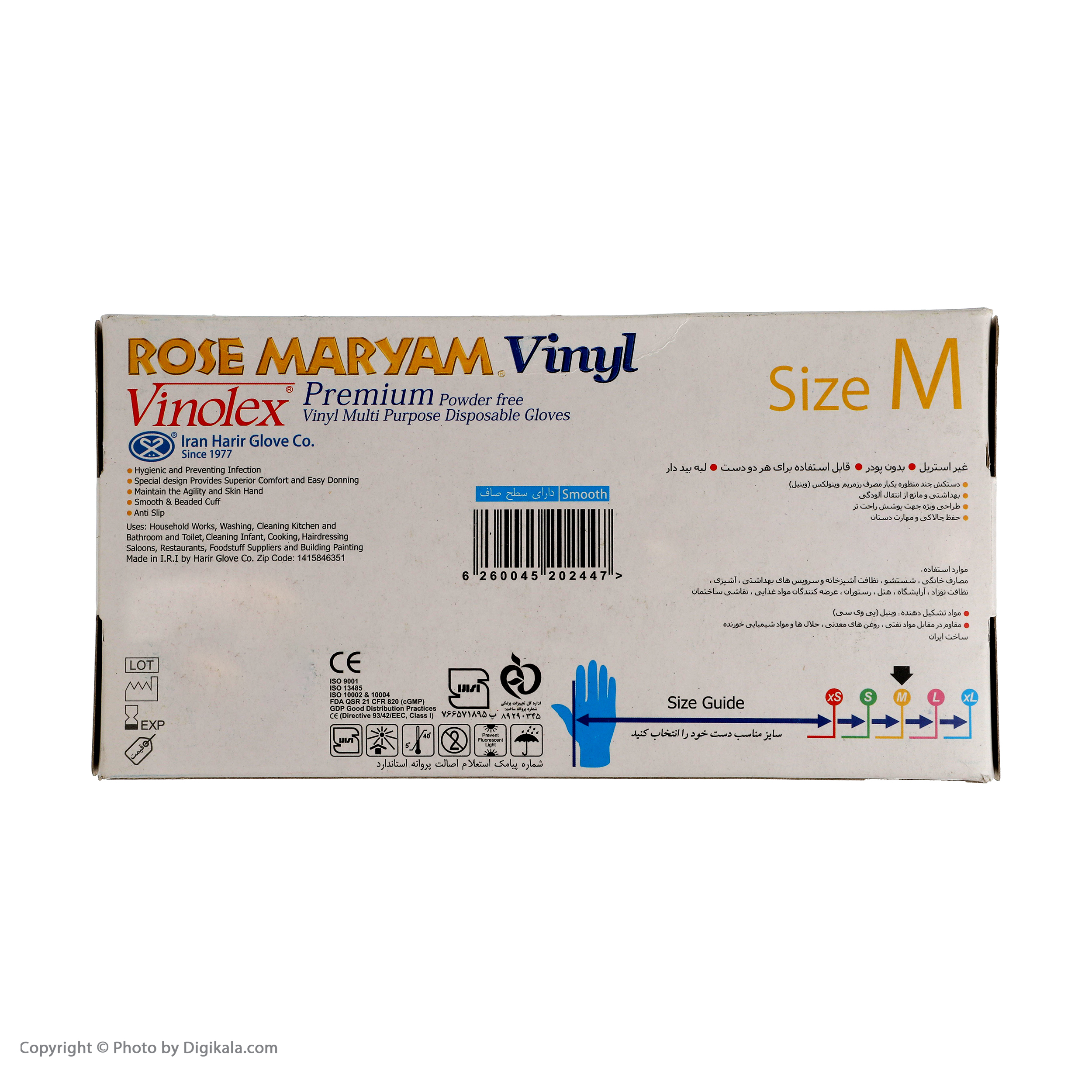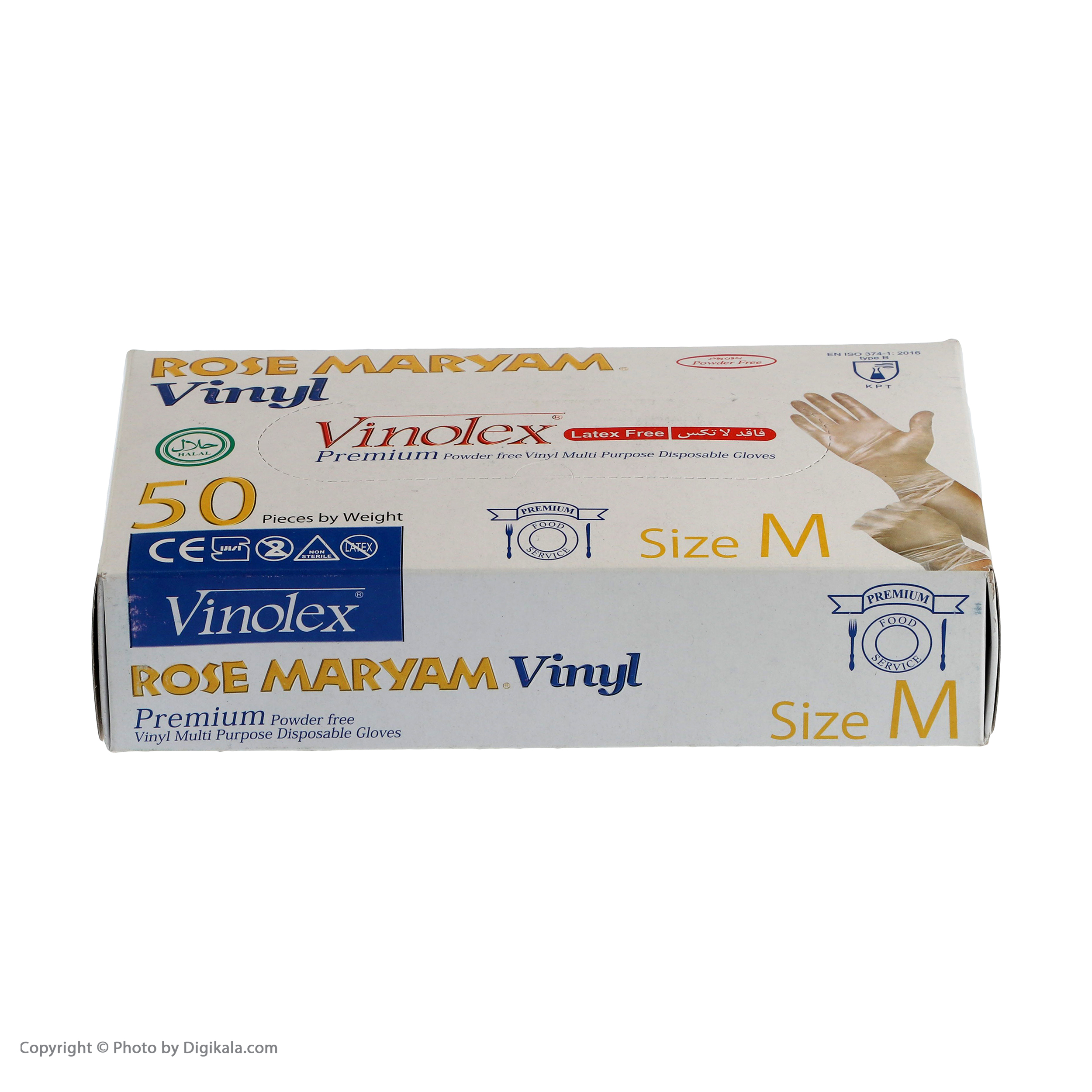 دستکش یکبار مصرف رز مریم مدل وینولکس M بسته 50 عددی