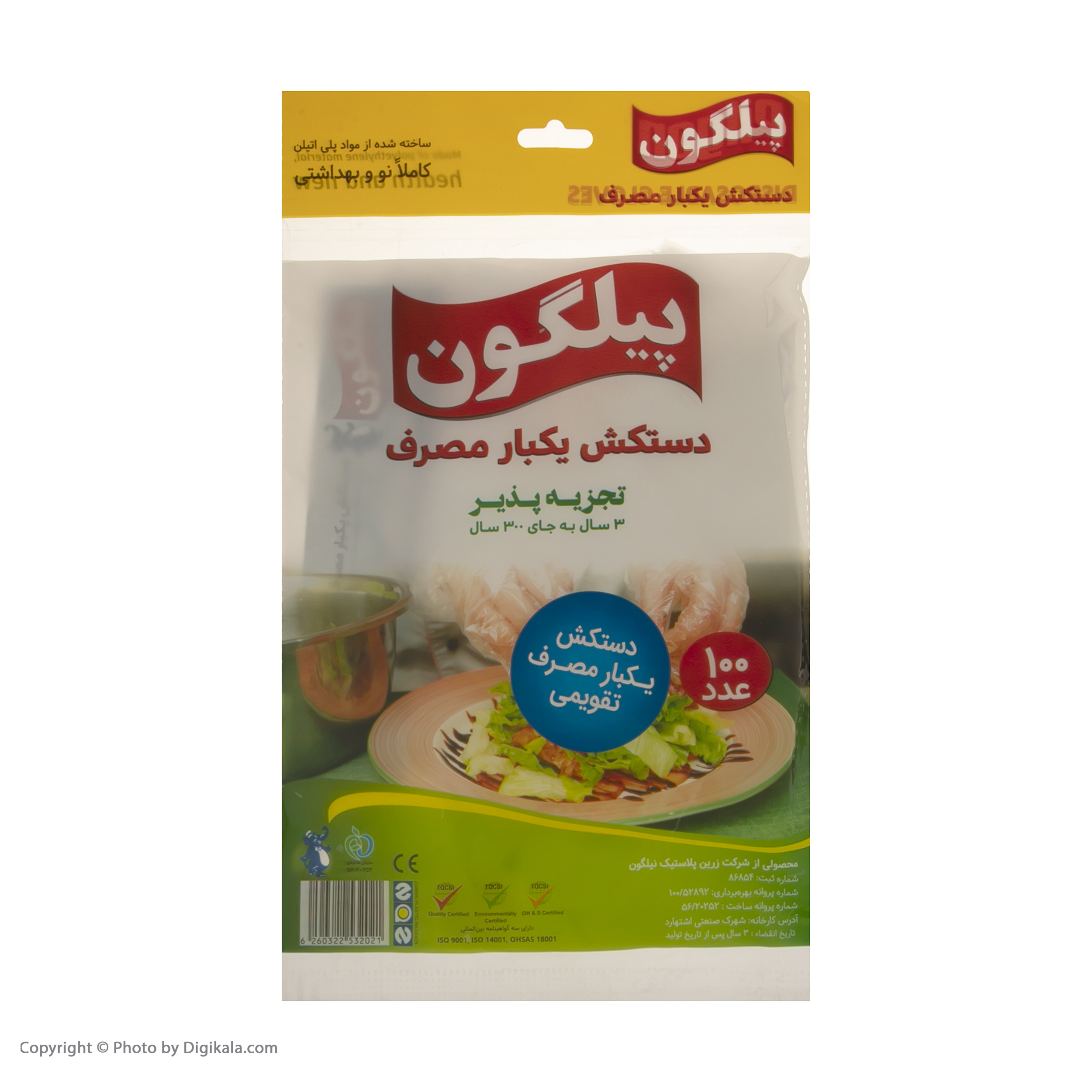 دستکش یکبار مصرف پیلگون مدل سلفونی بسته 100 عددی