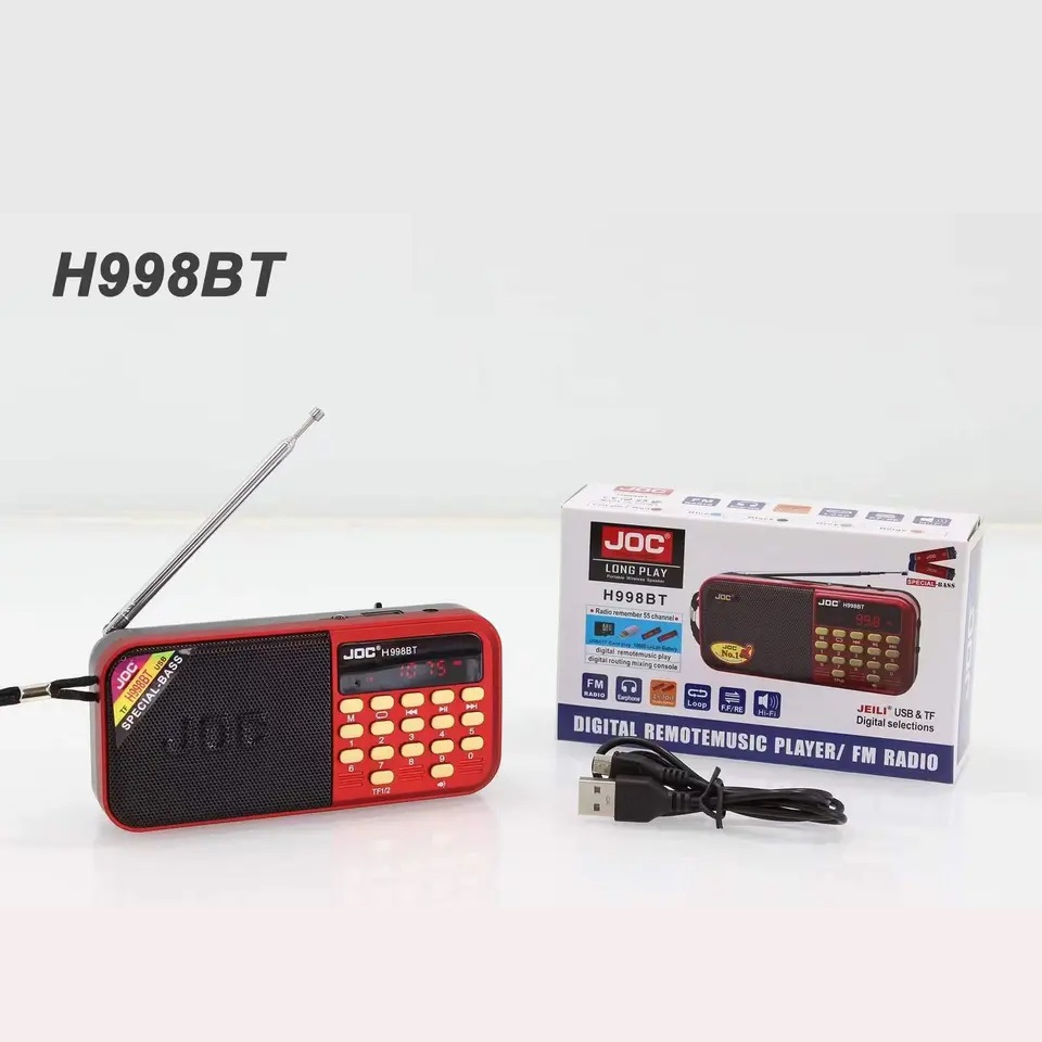 رادیو اسپیکر JOC مدل H998BT با طراحی کوچک و وزن سبک به شما این امکان را میدهد که همیشه و همه جا یک رادیو و پلیر موزیک را همراه خودتان داشته باشید و در هر زمان و مکانی که خواستید بتوانید از گوش دادن به موسیقی و ار برنامه های رادیو لذت ببرید.دارای ویژگیهایی چون صدایی بسیار بلند، با کیفیت و شفاف، عملکرد فوقالعاده، طراحی منحصر به فرد و زیبا میباشد و با آن می توانید گوش دادن به آهنگهای درون فلش مموری لذت ببرید.این رادیو دارای باتری از نوع ۱۸۶۵۰ میباشد که باتری پلیسی یا به باتری چراغ قوه های پلیسی معروف میباشد.