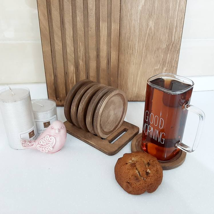 - سایر توضیحاتاین محصول زیبا از چوب بادوام، باکیفیت و ضد آب پلایوود روس تهیه شده و شامل یک پایه و 6 عدد زیرلیوانی میباشد.