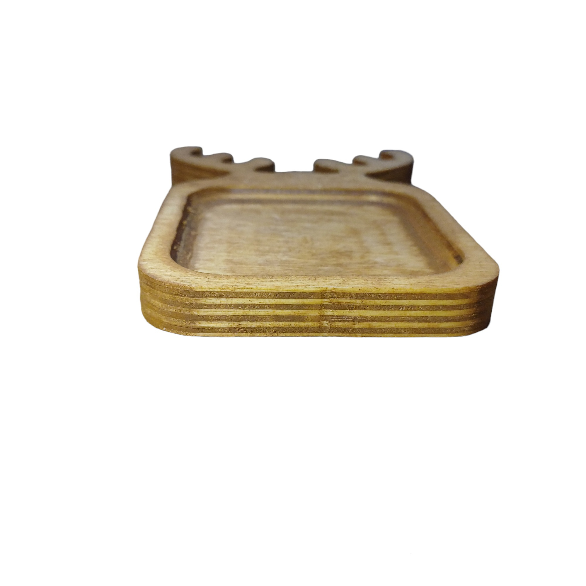 زیر لیوانی چوبی مدل مربع طرح گوزن بسته 2 عددی
