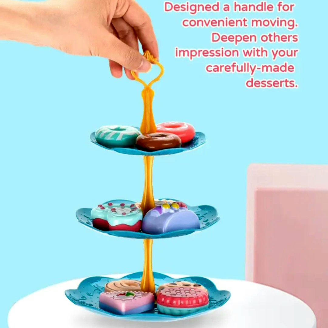 ست اسباب بازی استند شیرینی خوری همراه با شیرینی و دونات که برای کودکان بسیار جذاب است چرا که شکل و شمایل آن ها با شیرینی های واقعی مشابه است و کودکان دوست دارند با وسایل واقعی بازی کنند و این مشابهت آن ها را خوشحال خواهد کرد.