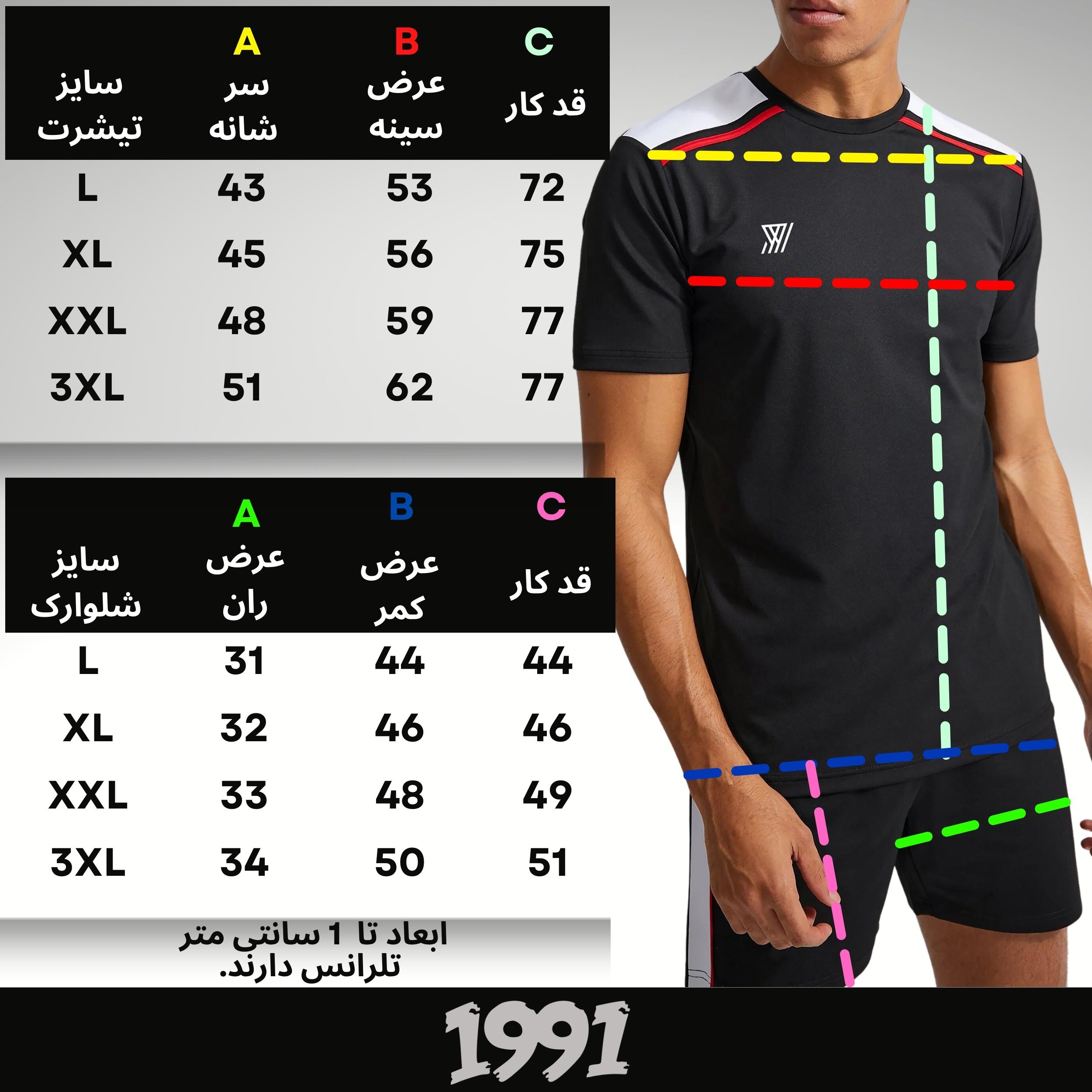 ست تی شرت و شلوارک ورزشی مردانه نوزده نودیک مدل ST1918 BW