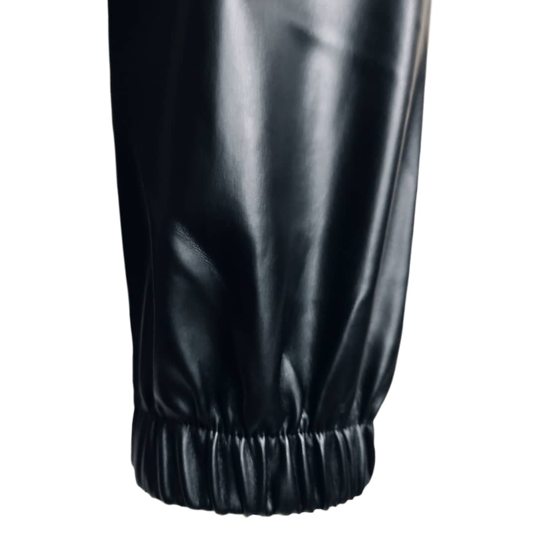 ست کراپ شلوار چرمی فوق از چرم مصنوعی و پلی آمید تولید شده است که از لحاظ ظاهری فوق العاده شبیه به چرم ولی دارای قیمت بسیار مناسب تری نسبت به چرم می باشد.داخل کار دارای لایه ی نازک کرکی می باشد.طول کراپ فوق ۴۸ سانتی متر و عرض آن ۴۶سانتی متر می باشد.قد شلوار که در کمر و سر پاچه ی آن کش کار شده ۹۰ سانتی متر است که در واقع استایل اسلش دارد.به طور کلی این ست بر اساس سایز بندی ایرانی بازه ی سایز ۳۶ تا ۴۲ را پوشش می دهد.