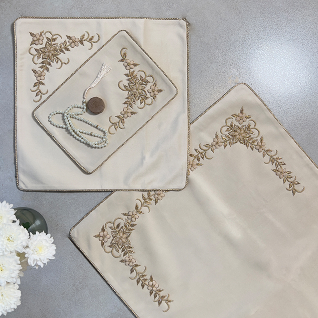 این سجاده و جانماز سرمه دوزی از جنس پارچه مخمل بوده و بسیار با کیفیت است. همچنین این محصول، گزینه ای مناسب جهت خرید جهیزیه عروس می باشد. ابعاد این سجاده و جانماز مخمل به این صورت است: جانماز ۶۰×۹۱ (۲±) سانتی متر، سجاده ۴۵×۴۵ (۲±) سانتی متر و سجاده کوچک: ۲۱×۳۳ (۲±) سانتی متر می باشد. رنگ این محصول با توجه به رنگ صفحه نمایشگر شما ممکن است تا ۱۰ درصد متفاوت باشد.