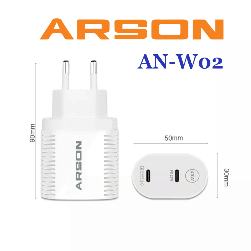 شارژر دیواری آرسون (ARSON) مدل AN-W02 دارای دو خروجی Type-C می باشد که یکی از درگاههای Type-C آن، از فناوری پیشرفته Power Delivery یا PD پشتیبانی می کند؛ فناوریِ شارژِ فوقسریعِ Power Delivery به شما این قابلیت را میدهد که نحوهی مصرفِ برق و نحوهی شارژ شدنِ دستگاهِ مرتبط به لپتاپ، کامپیوتر و غیره را مدیریت و بهینهسازی کنید، به نحوی که دستگاهِ موردنظرِ شما فقط به اندازهای شارژ دریافت کند که برای فعالیتِ مشخصشده به آن نیاز دارد، نه بیشتر و نه کمتر! قابلیتی که جدیدترین فناوری شارژ بوده و سرعت بسیار بالای شارژ آن و هوشمند بودن تمام فرآیند شارژ، از مهمترین ویژگی های آن است. درگاه دیگر این محصول شگفت انگیز نیز از فناوری Quick Charge 3.0 استفاده می کند که سرعت شارژ بسیار بالایی را سبب می شود. توان خروجی این محصول، ۴۰ وات بوده و ولتاژ ورودی به ازای شدت جریان ۰.۵ آمپر، برابر با ۱۰۰-۲۴۰ ولت و ولتاژ خروجی به ترتیب، برای شدت جریان ۴ آمپر(MAX) 5 ولت و ۲.۴ آمپر MAX، ۹ ولت و برای شدت جریان ۱.۸ آمپر MAX، ۱۲ ولت می باشد که در این حالت، بالاتری توان خروجی یعنی ۴۰ وات، فراهم می شود. با این شارژر دیواری می توان انواع گوشی موبایل، تبلت و دستگاه های هوشمند را شارژ نمود. از ویژگی های این محصول به کوچک و سبک بودن آن می توان اشاره کرد که وزنی برابر با ۱۵ گرم و ابعادی برابر با ۹۰x50x30 میلی متر دارد. این محصول قابلیت محافظت در برابر افزایش شارژ، شدت جریان، ولتاژ، حرارت، تخلیه شارژ و اتصال کوتاه را نیز دارد. جنس بدنه AN-W02 از پلاستیک مرغوبی می باشد که هنگام شارژ داغ نمی شود. دربسته بندی این شارژر، یک کابل دو سر تایپ سی (TYPE-C) به طول ۱۰۰ سانتی متر قرار دارد.