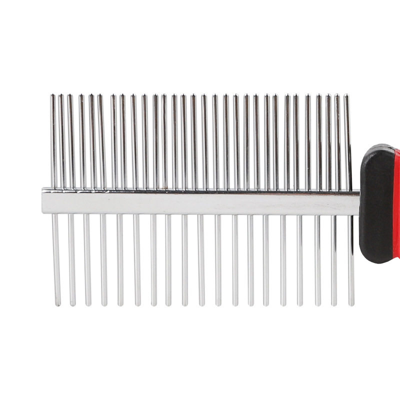 این شانه مناسب برای همه نژادها جهت باز کردن گره موهای سگ و گربه خانگی شما پیشنهاد می گردد. در صورتی که موهای حیوان به صورت مرتب شانه نشود، موجب می گردد موهای مرده به مرور به صورت توده های نمد مانند درآمده، باعث جلوگیری از گردش هوا در سطح پوست شده و درنتیجه باعث بیماری های پوستی مانند انواع قارچ می گردند. این شانه گره بازکن دو طرفه طوری طراحی شده است که دارای دو ردیف دندانه است یکی با فاصله های کم و طرف دیگر فاصله بیشتر ضمنا دندانه ها به صورت نوک گرد جهت حرکت نرم و نخراشیدن پوست طراحی شده و در دست به راحتی قرار می گیرد .