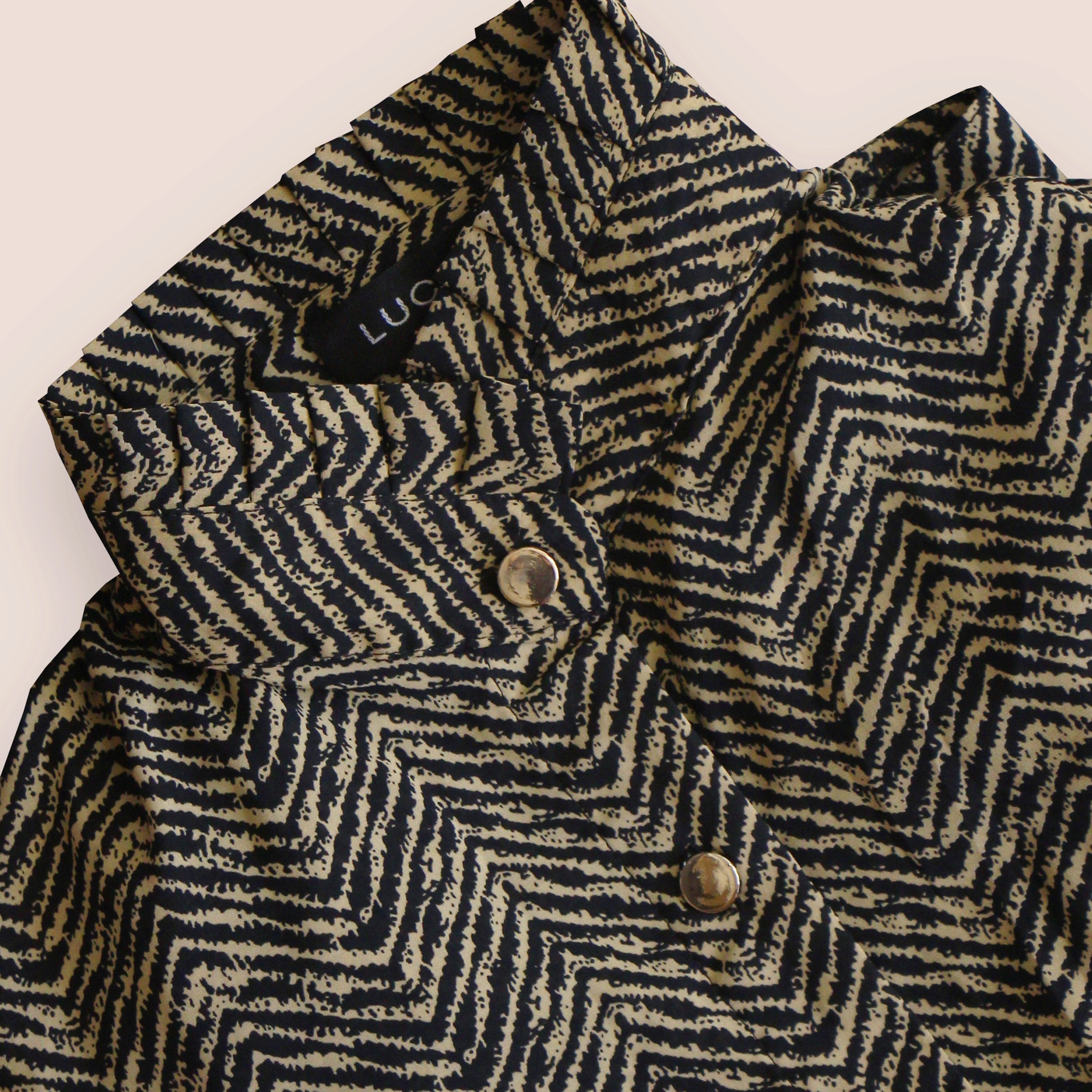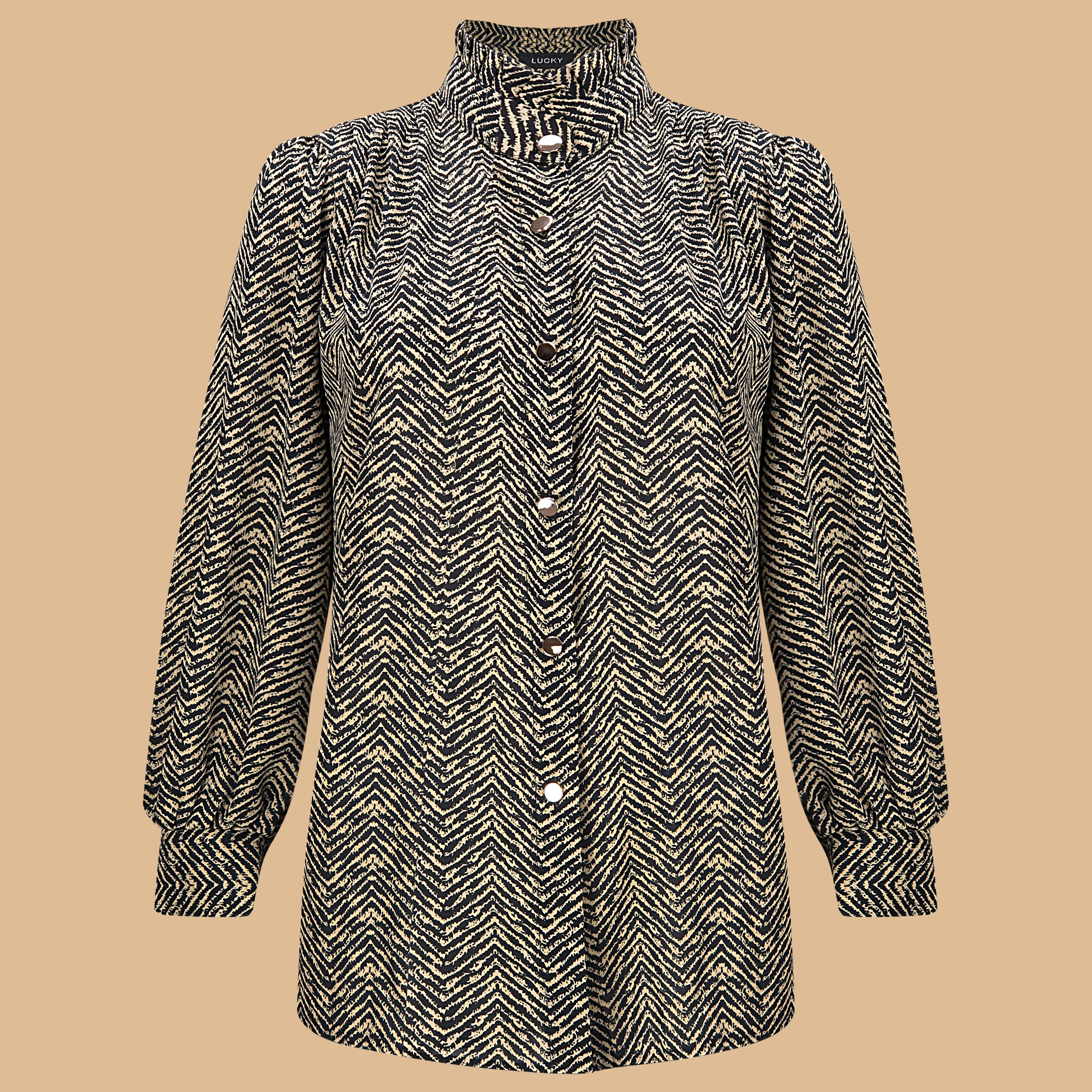 شومیز مدل D79 دارای رنگ و طرح بسیار زیبایی است که دوخت تمیز و تنخور عالی آن، زیبایی آن را دو چندان کرده است. طرح زیگزاگی و آستین های این مدل بسیار جذاب هستند و همچنین یقه ایستاده و چین دار لباس جلوه شیک تری به این شومیز بخشیده است.