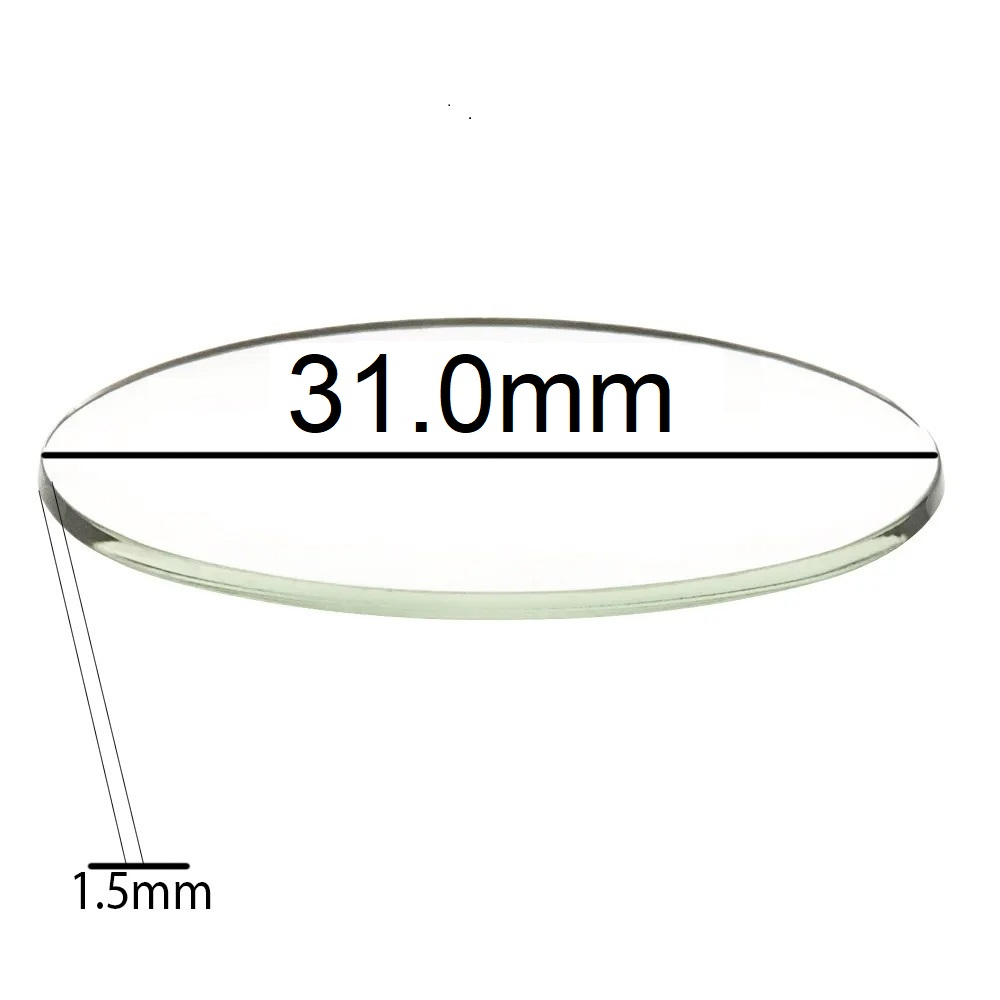 شیشه معدنی ساده که در برابر تغییر رنگ در اثر حرارت و گذشت زمان مقاوم است اما در نهایت ضد خش محسوب نمیشود.و این نوع از شیشه ها در سایز های استانداری استفاده میشود سایز این شیشه ۳۱.۰ mm و ضخامت آن ۱.۵mm است.