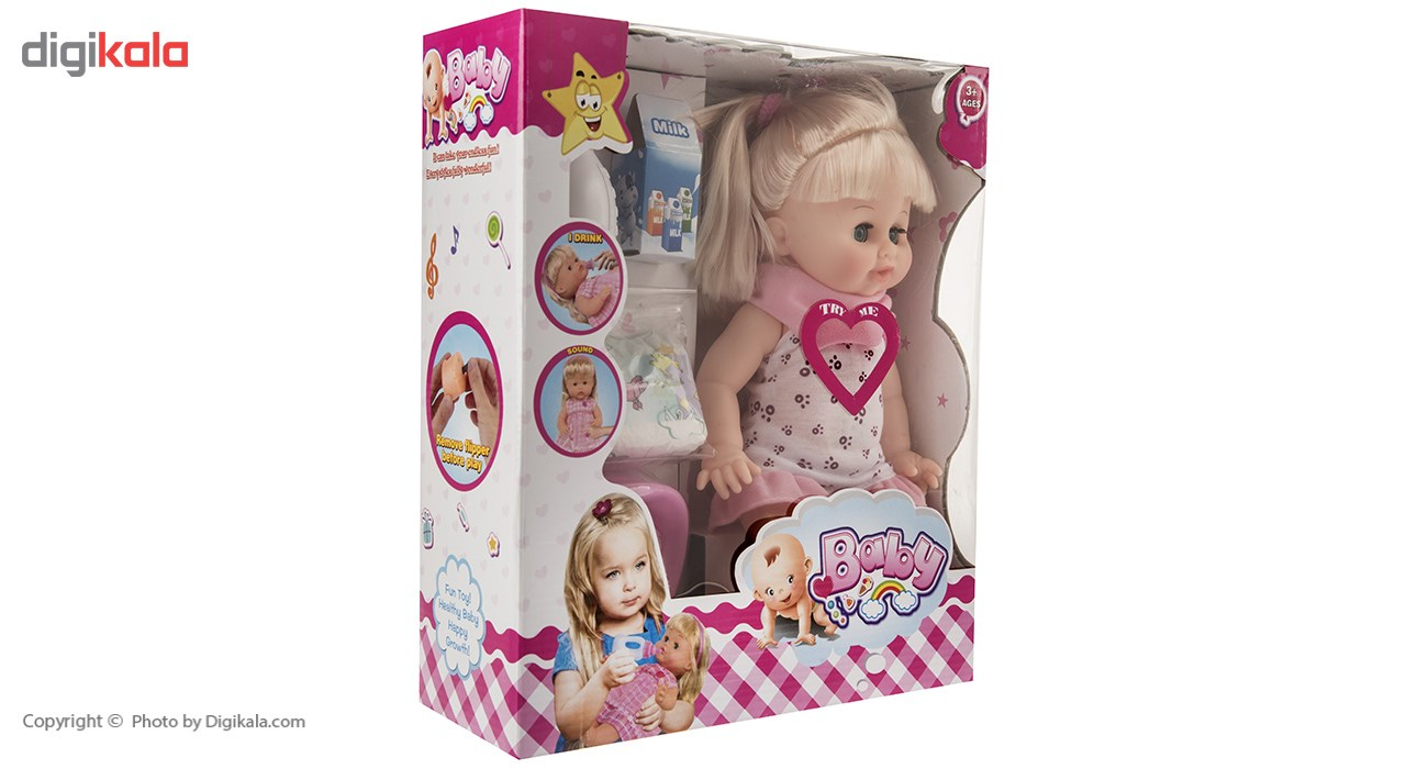 - سایر توضیحاتمناسب برای کودکان بالای سه سال - قابلیت ادرار کردن - نیاز به 3 باتری ساعتی - دارای باتری - دستان و پاهای عروسک با قابلیت حرکت - دارای یک لگن به ابعاد: 10 × 3.5 × 9 سانتی متر - یک شیشه شیر به ابعاد: 11 × 4.5 سانتی متر - یک پوشک - پاکت شیر به ابعاد: 8.5 × 3 × 3 سانتی متر