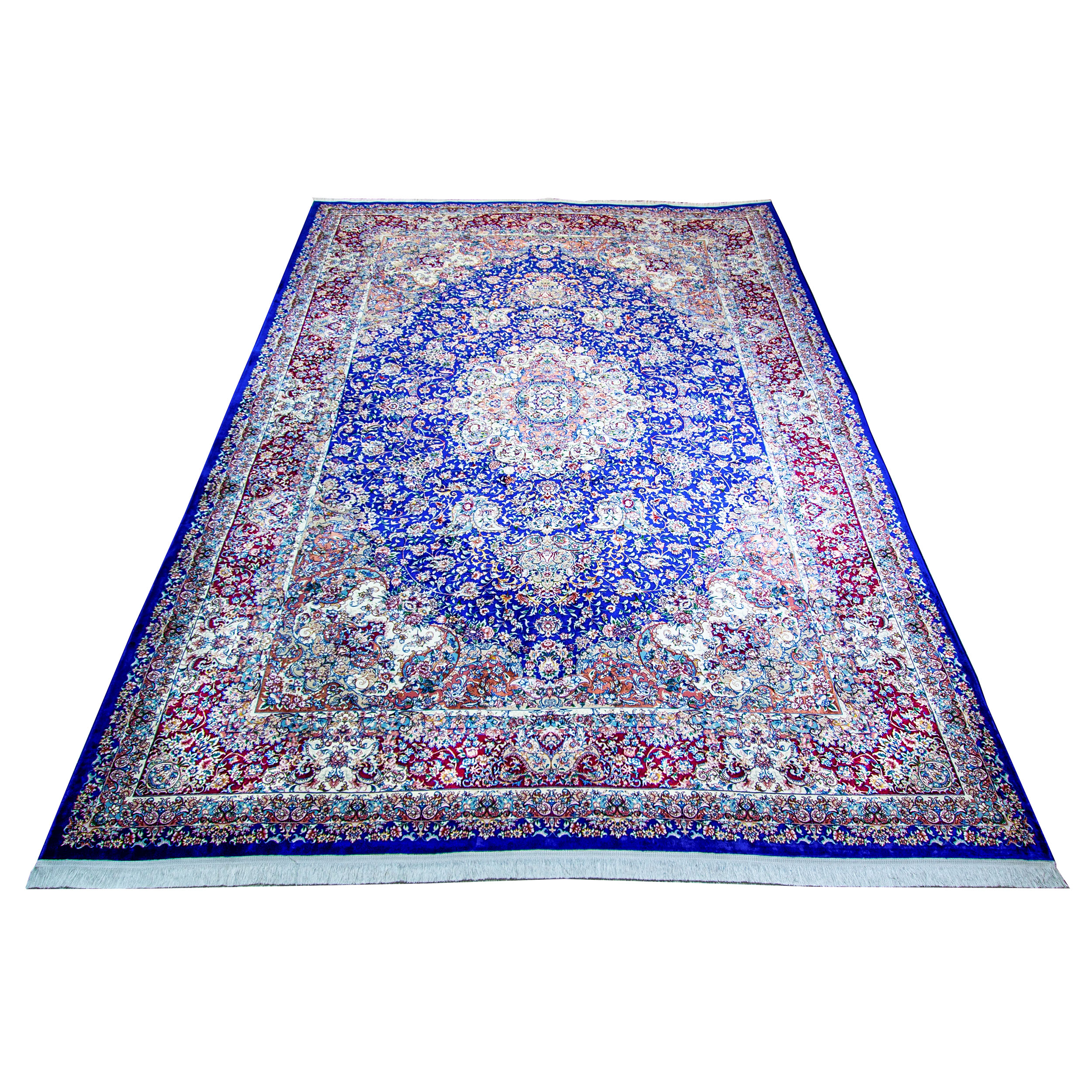 فرش ماشینی مدل ابریشمی هیلا کلکسیون کد 110929 زمینه سرمه ای