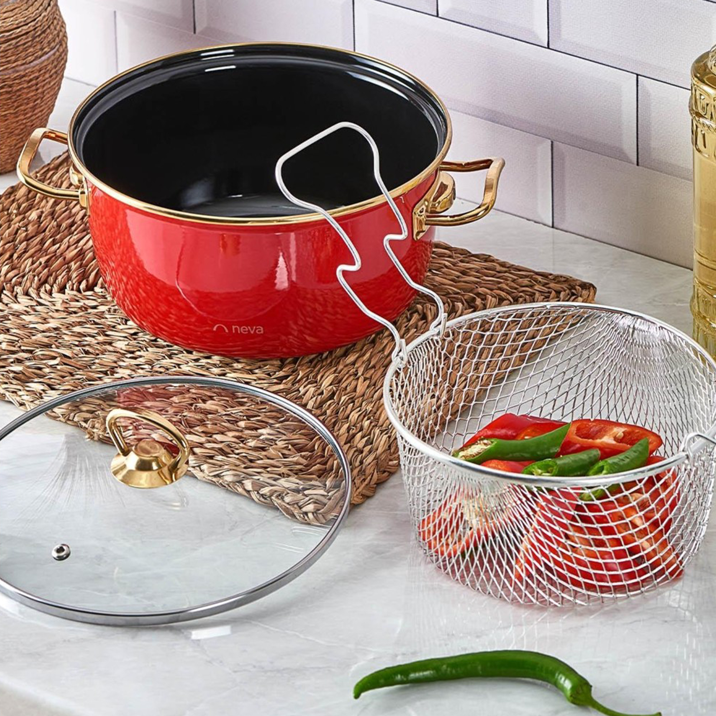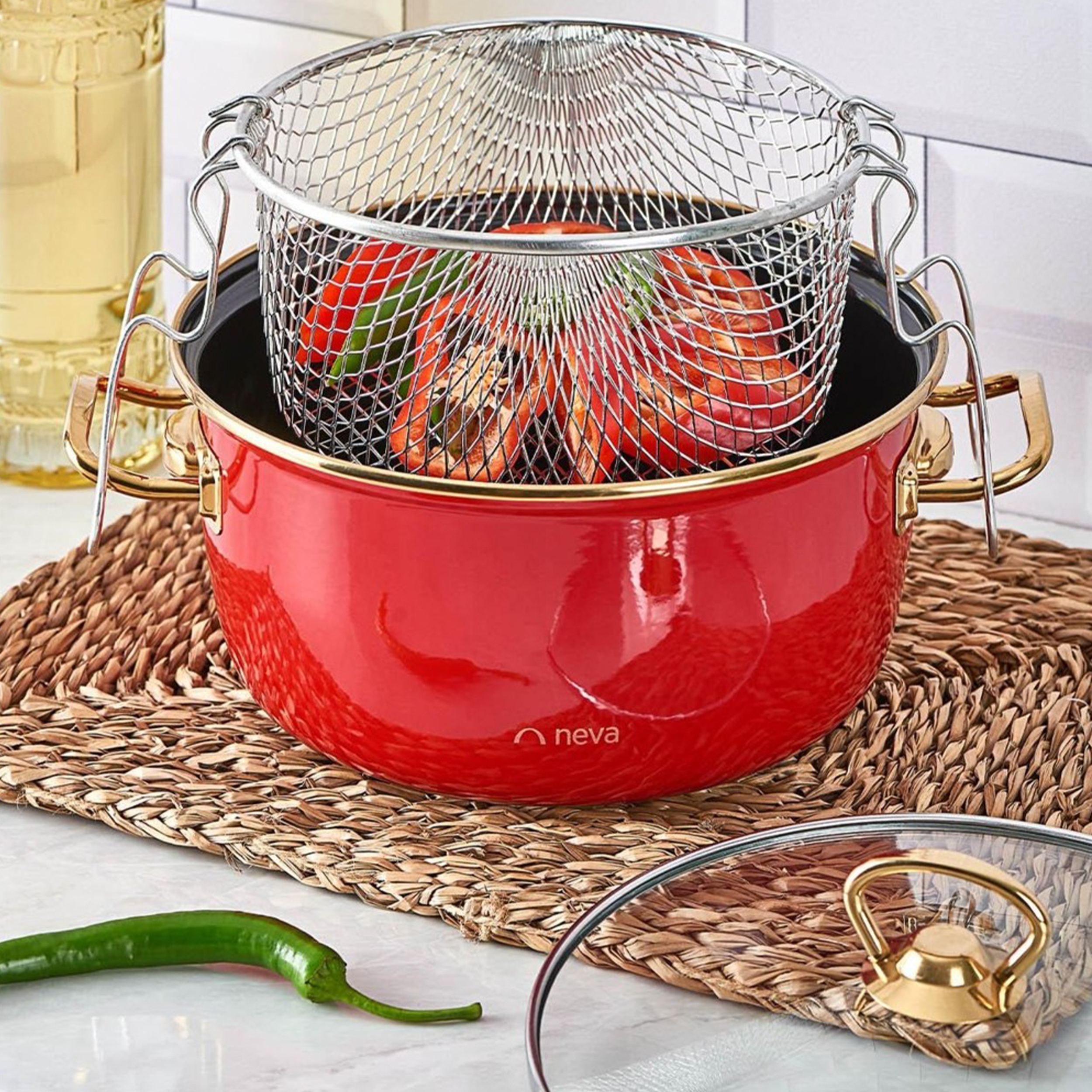 - سایر توضیحاتاین محصول با حجم 4 لیتر و اندازه 24 سانتی متر به شما این امکان را می دهد که به راحتی سرخ کنید و به لطف سطح صاف لعاب باعث خوشمزه تر و سالم تر شدن غذاها می شود - این محصول را می توان در ماشین ظرفشویی شست - می توان با خیال راحت در تمامی بخاری ها، اجاق های شعله ای، اجاق های القایی و اجاق ها استفاده کرد - ایده آل برای سرخ کردن و پختن گوشت بزرگ، ماهی یا مرغ کامل - سیب زمینی های سالم را می توان با روغن کم درست کرد - ساخته شده از لعاب غیر چسبنده با کیفیت بالا - دارای سبد سرخ کن براق - دارای درب شیشه ای - میتوان به راحتی در فر و ماکروویو استفاده کرد