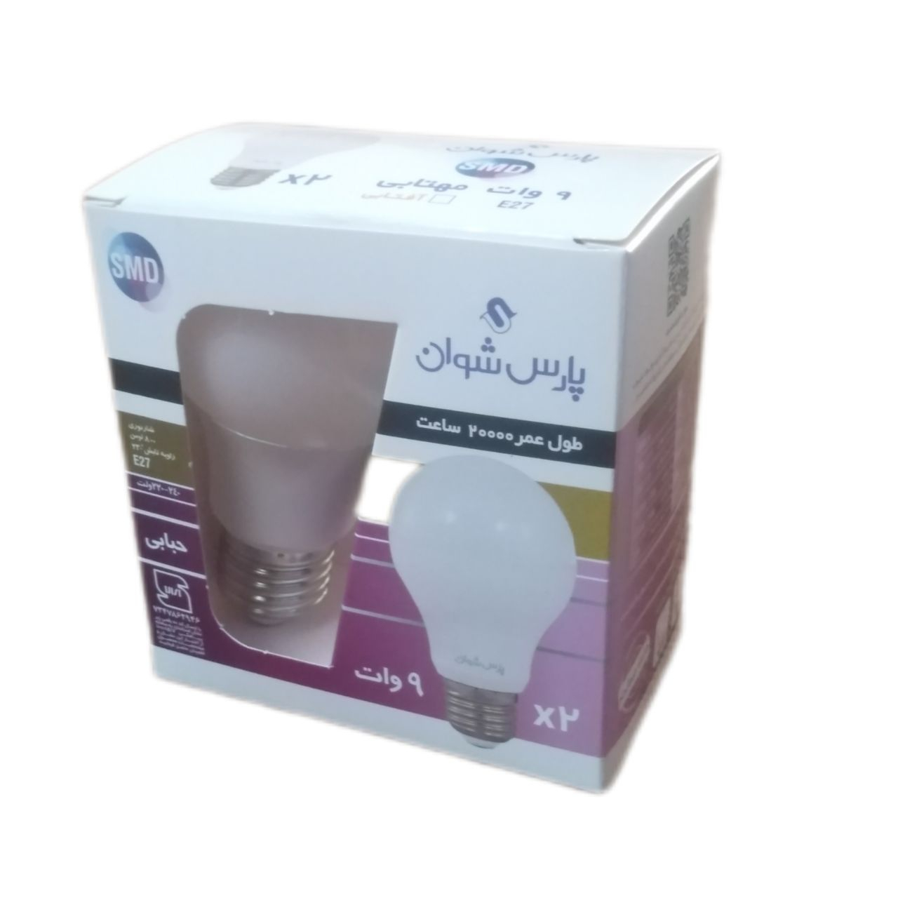لامپ اس ام دی 9 وات پارس شوان مدل حبابی پایه E27 بسته 2 عددی