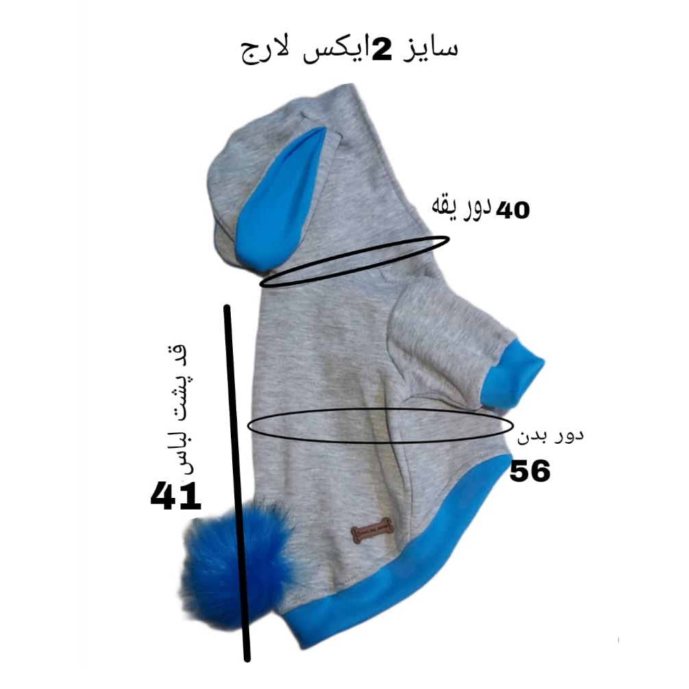 لباس سگ و گربه طرح سویشرت مدل خرگوشی طوسی آبی سایز XXL