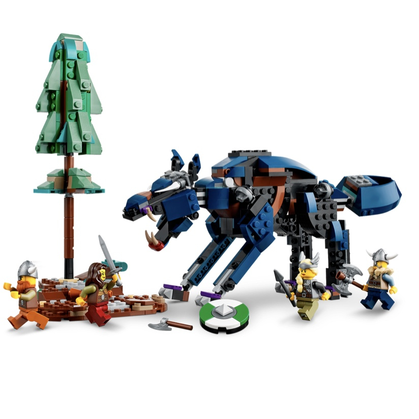 ۳ اسباببازی وایکینگ در یک مجموعه – بچهها و بزرگسالان عاشق این مجموعه کشتی وایکینگ ۳ در ۱ لگو و مار میدگارد (۳۱۱۳۲) هستند که شامل یک کشتی وایکینگ، یک خانه وایکینگ و یک گرگ فنریس است.