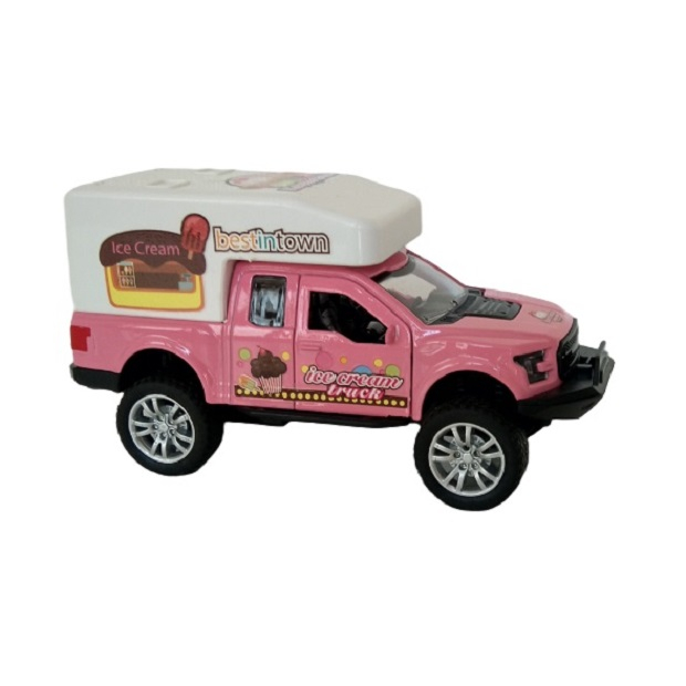 ماشین بازی فلزی عقب کش طرح کامیون بستنی فروشی به طول سیزده سانتیمتر که دربهای راننده و شاگرد بازشو میباشد . این اسباب بازی دارای کیفیت خوب بوده و بادوام است .