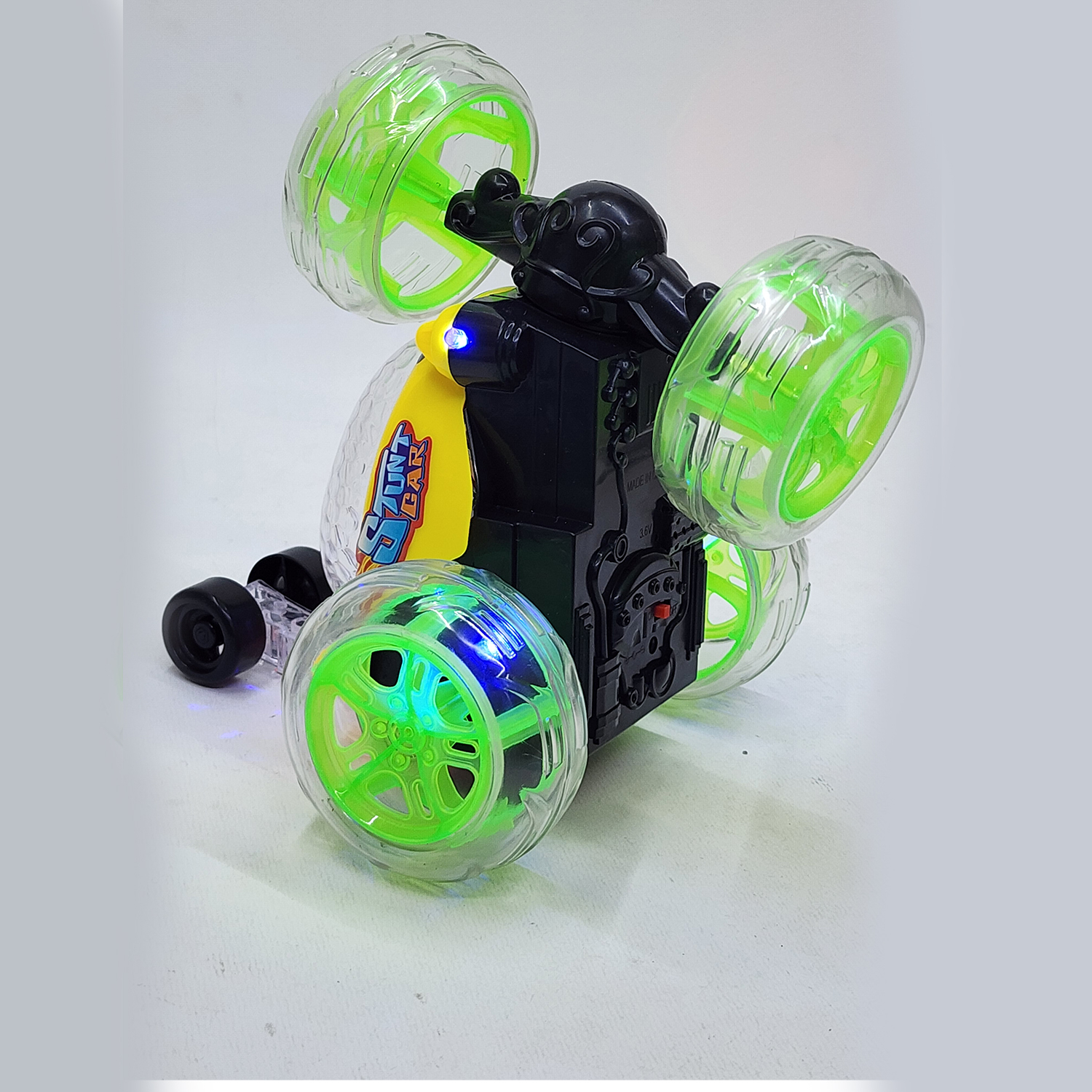 بازی با یک ماشین کنترلی همیشه مورد استقبال کودکان قرار می گیرد به خصوص اگر آن ماشین یک ماشین همه فن حریف و پرجنب و جوش باشد. ماشین دیوانه کنترلی مدل STUNT CAR که بین بچه ها به ماشین دیوانه معروف است با حرکات جالب و متنوعش بچه ها را سر ذوق می آورد. به خصوص اینکه این ماشین هیچ جا گیر نمی افتد و به هر ترفندی باشد خودش را رها می کند بر جذابیت آن افزوده است. ماشین دیوانه STUNT CAR توسط یک ریموت کنترل بی سیم هدایت می شود که نیاز به دو عدد باتری قلمی دارد. این ماشین با داشتن رقص نور زیبا بر روی سقف ماشین و در چرخ ها علاوه بر موزیکال بودن و پخش آهنگ در هنگام حرکت نمای زیبایی به خصوص در تاریکی ایجاد می کند. این ماشین بازی شارژی است و میتوان به وسیله شارژر مخصوص موجود در بسته بندی آن را شارژ کرد. در زیر ماشین دکمه روشن خاموش دارد و به محض روشن شدن موزیک هیجان انگیزی پخش می کند. حرکات سریع به تمام جهات و حرکات دورانی این ماشین باعث شده که در هیچ گوشه و کناری گیر متوقف نمی شود و با برعکس شدن و استفاده از چرخ کوچک بالای ماشین بتواند خودش را رها سازد. این ماشین با استفاده از شش چرخی که دارد هم در داخل و هم در خارج از خانه قابل استفاده است.