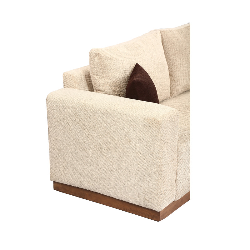 مبل راحتی ۵نفره ی کارنا با طراحی ال و کم جا,با ظاهری ساده و مدرن و بر اساس سبک مینیمال عرضه می شود.این ست که شامل دو تکه(کاناپه و رست)است با استفاده از بهترین مواد اولیه شامل چوب در کلاف و نمای چوبی پایه,اسفنج ۳۵ کیلویی در نشیمن و نیز پارچه ی لطیف و مرغوب تولید شده است.همچنین زیر اسفنج کار شده در این محصول از تسمه استفاده شده که به ان خاصیت ارتجاعی بهتر و نیز طول عمر بالاتری می دهد.علاوه بر این لایکو بین پارچه و اسفنج از چروک شدن پارچه در بلند مدت جلوگیری می کند.در نهایت استفاده از بهترین متریال در تولید و نیز طراحی و ساده و کم جا,این ست را به انتخابی ایده ال برای افرادی که به دنبال مبلی با نشیمنی راحت برای منازل کم جا هستند تبدیل می کند.
