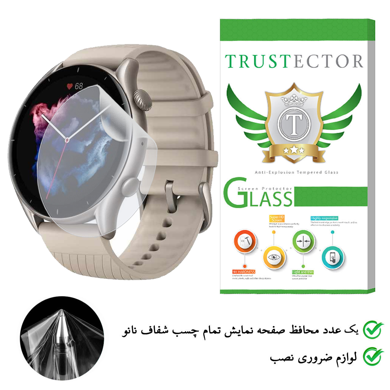 برچسب نانو زرد، با ضخامت کمی که دارد، شفافیت صفحه و میزان حساسیت لمس صفحه نمایش ساعت هوشمند شما را حفظ کرده و همچنین در برابر خط و خش و گرد و غبار و آسیب هایی از این قبیل یک گزینه ایده آل به شمار می رود.