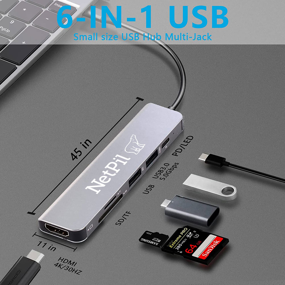 برای استفاده همزمان چند دستگاه در یک کامپیوتر یا تبلت و یا گوشی تلفن همراه ما نیاز به یک وسیله ای داریم که دارای چند پورت مختلف باشد و بتواند این نیاز ما را برطرف نماید، نت پیل برای این منظور هم چاره اندیشیده و با تولید هاب ۶ پورت USB-C نت پیل مدل ۸۰۲۴ به کاربران کمک کرده دیگر محدودیتی برای استفاده از لوازم خود نداشته باشد ، چندین پورت در این هاب ارائه شده که استفاده از چندین دستگاه را به حداقل می رساند که در نتیجه باعث صرفه جویی در وقت و هزینه شما میشود . ۶ پورت در یک هاب usb c وجود دارد ، بنابراین با این گزینه احساس درایور های اضافی یا سایر نرم افزارهای گران قیمت برای انتقال داده نخواهید داشت ، هاب ۶ پورت usb c نت پیل مدل ۸۰۲۴ دارای یک درگاه SD و یک TF دو درگاه ۳.۰ usb و یک درگاه pd و یک پورت HDTV میباشد . از مواد بسیار بادوام و مرغوب آلومینیوم و ABS ساخته شده و مقاومت بالایی در برابر ضربه دارد طول کابل ده سانتی متر بوده و ابعاد آن ۱۲ در ۳ در ۱ سانتیمتر را شامل میشود بسیار سبک و مینیمال بوده و حمل و ذخیرهسازی راحتی را برایتان مهیا میکند سازگار با MacBook 2018/2017/2016, MacBook Pro 2018/2017, ipad Pro 2018, NINTENDO SWITCH Chromebook, Huawei Mate20/Mate 20 Pro, Samsung S8/S9/Note 8/Note 9, HP Specter Pavilion, Huawei Matebook, Dell XPS Series, Mi Air and Supports Mobile Phones and tablets withDP function است.