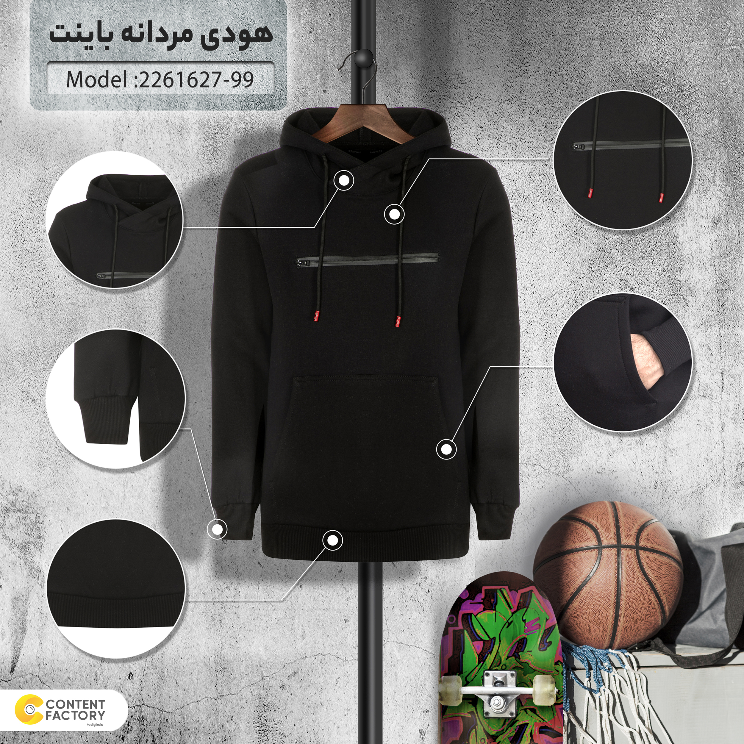 معرفی هودی مردانه باینت مدل ۲۲۶۱۶۲۷-۹۹ رنگ مشکی