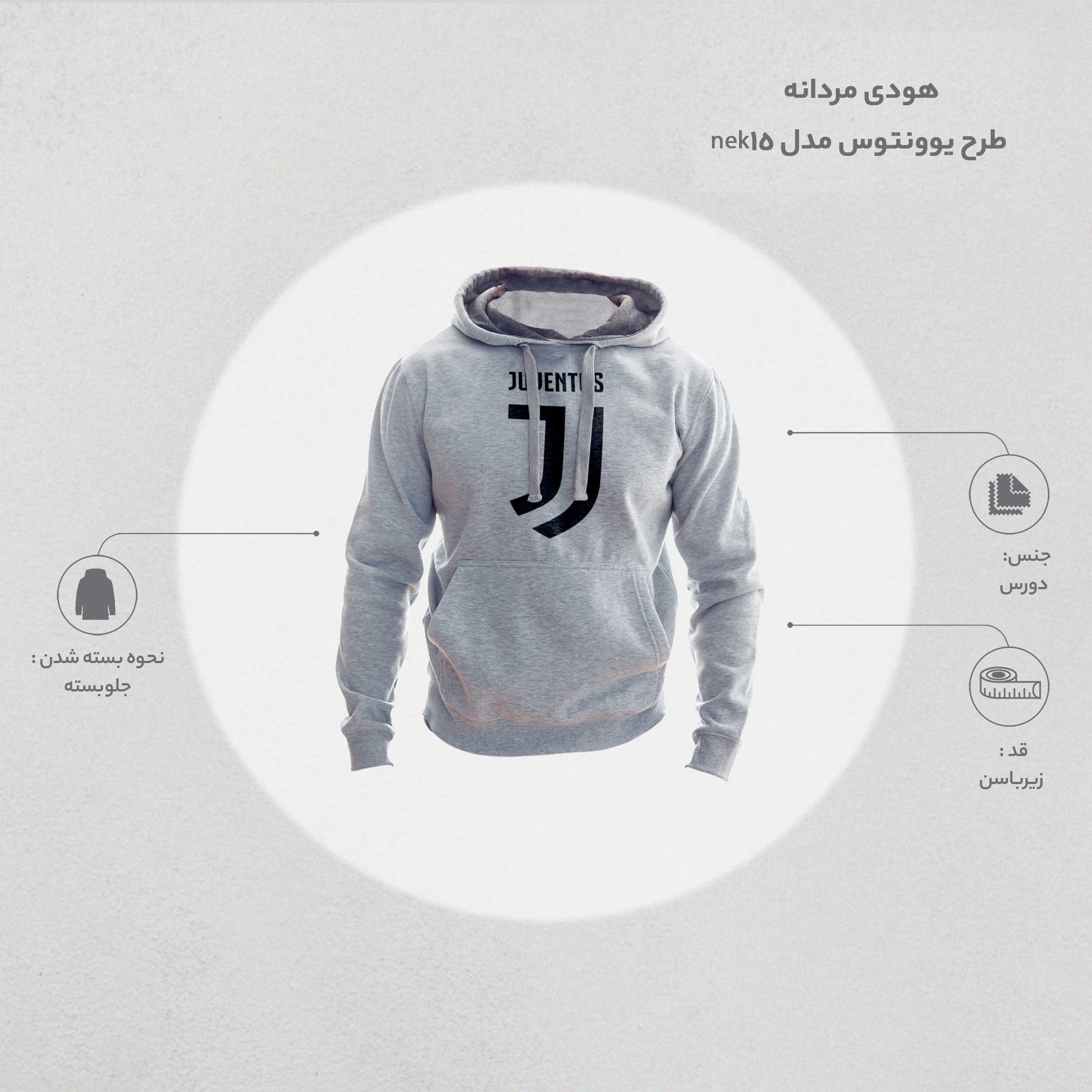 هودی مردانه طرح یوونتوس مدل nek15 رنگ طوسی