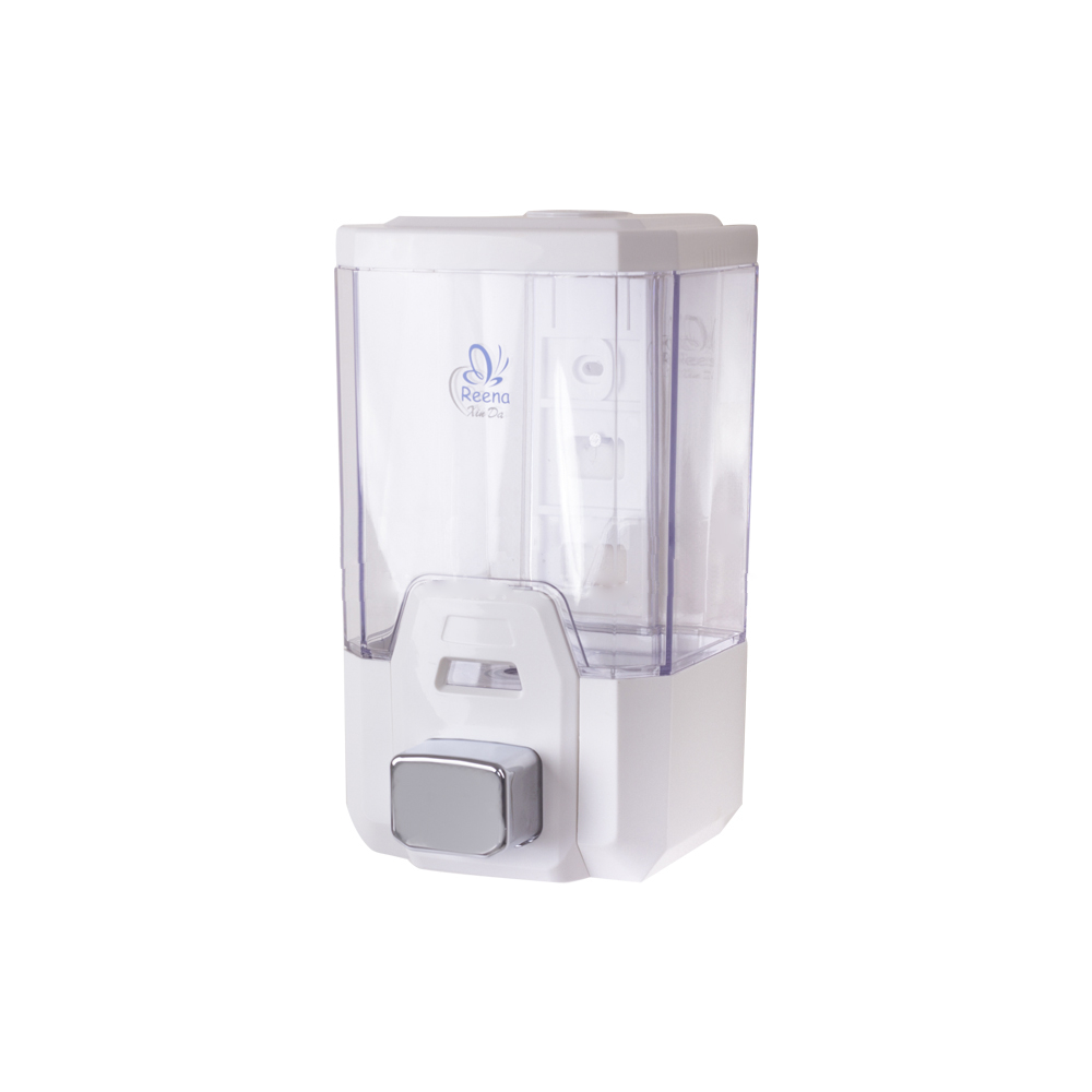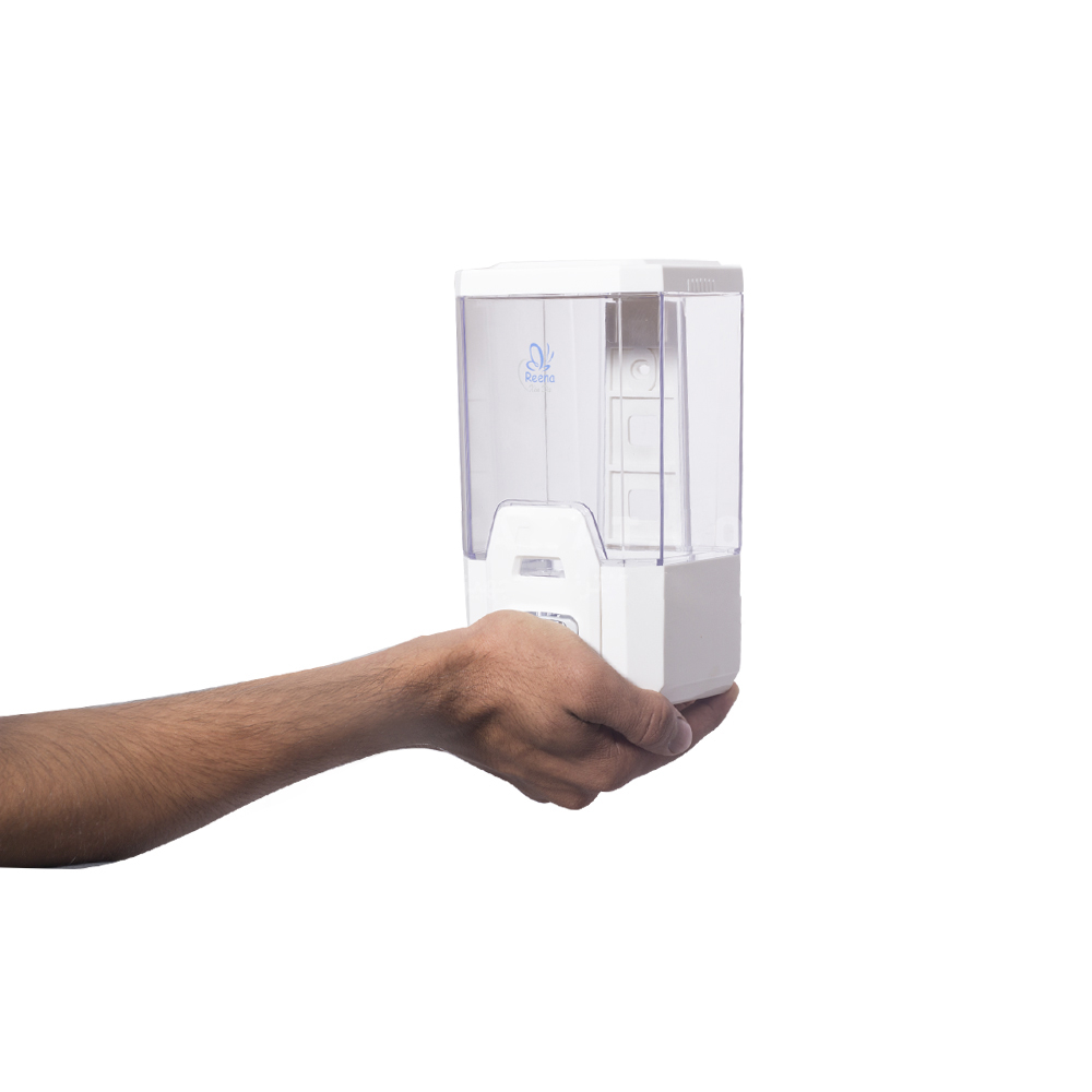 صابون ریز دستی مدل ۲۵۰۰ رینا جهت استفاده در سرویس های بهداشتی با قابلیت نصب به دیوار.این صابون ریز دستی دارای یک پمپ قوی با کیفیت ساخت بالا میباشد.حجم مخزن محصول ۱۰۰۰ سی سی (یک لیتر) میباشد.جنس بدنه محصول از نوع پلی اتیلن با کیفیت است که دوام بالایی دارد.صابون ریز Reena 2500 دارای بدنه مقاوم سفید جهت استفاده از مایع دستشویی ، مایع ظرفشویی ، شامپو و ژل ضد عفونی کننده میباشد.بدنه شیشه ای این صابون ریز از جنس پلاستیک شیشه ای بوده و در کنار استحکام خوب آن وزن کم را برای آن به ارمغان آورده است.ضخامت شیشه این صابون ریز ۳ میلیمتر بوده و مقاومتی خوبی در برابر فشار و برخورد از خود نشان میدهد..بدنه کروم و محکم این صابون ریز از استحکام بسیار خوبی برخوردار است .پمپ بسیار با کیفیت میباشد.اندازه بزرگ شاسی کروم آن در کنار کارکرد روان،استفاده از آن را راحت مینماید.مخزن قفل دار و کلید مخصوص مخزن.این صابون ریز جا دار و زیبا دارای مکانیزم قفل درب بالایی است و با استفاده از کلید آن میتوانید درب بالایی صابون ریز را قفل نموده تا مانع از دسترسی اطفال و یا افراد غیر مسئول به درون مخزن شوید.حجم مخزن این صابون ریز ۱۰۰۰ میلی لیتر بوده و برای مکان های دارای مصرف بالا گزینه ای ایده آل،زیبا و همراه با صرفه اقتصادی است.قسمت پشتی محصول به راحتی از آن جدا شده و با استفاده از دو عدد پیچ و رول پلاک تعبیه شده در بسته بندی محصول میتوانید آن را به دیوار پیچ نمایید.داخل بسته بندی محصول سه عدد برچسب نقره ای حاوی نوشته های SOAP, SHAMPOO و LOTION برای مشخص کردن نوع محلول داخل صابون ریز میباشد.این محصول دارای راهنمای نصب میباشد.