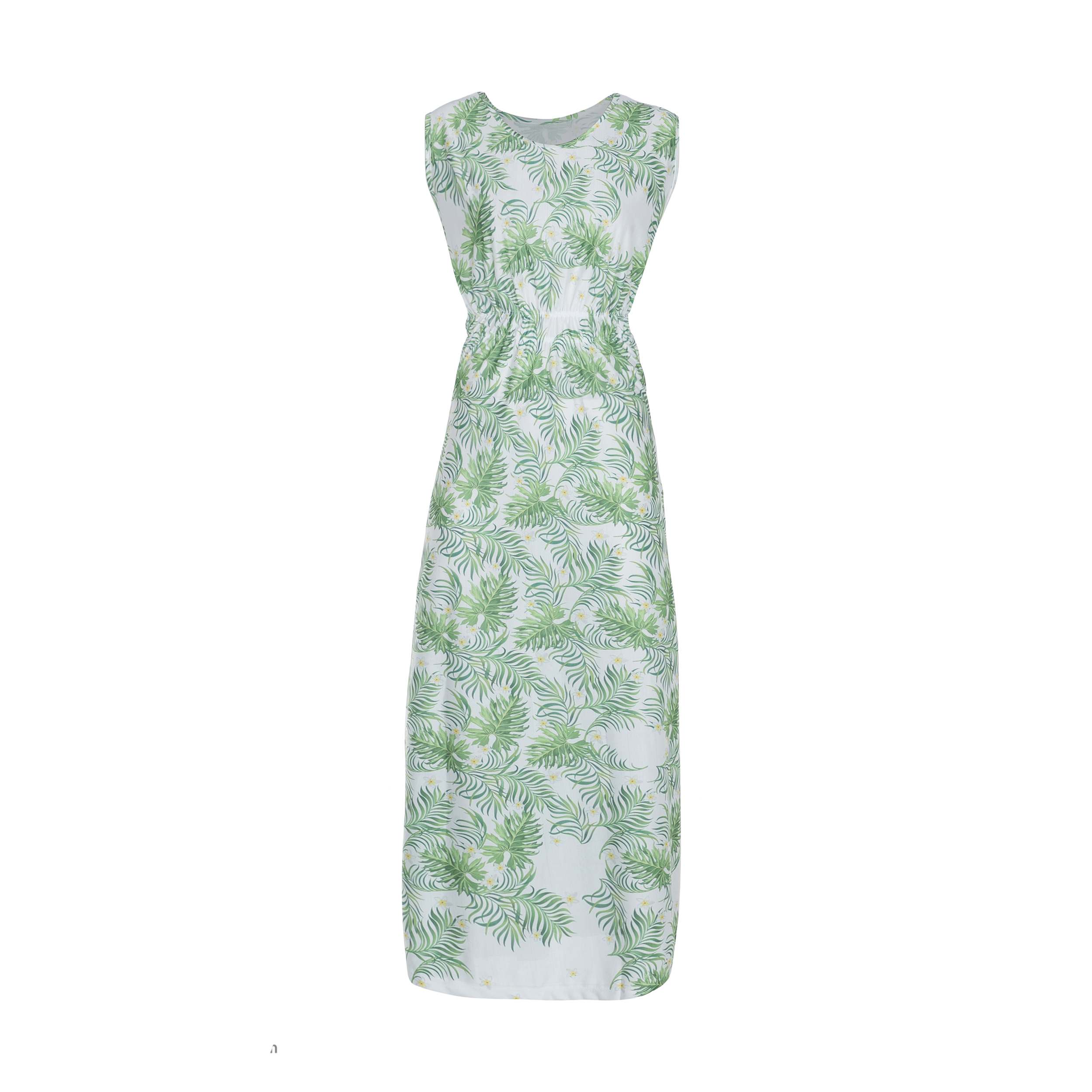 پیراهن ساحلی زنانه از جنس نخ فلامنت و آستین حلقه ای و یقه گرد بوده و کمر کش می باشد. طرح پارچه برگ و گل رنگی و قواره آژاد و مناسب استفاده روزمره و مهمانی است.