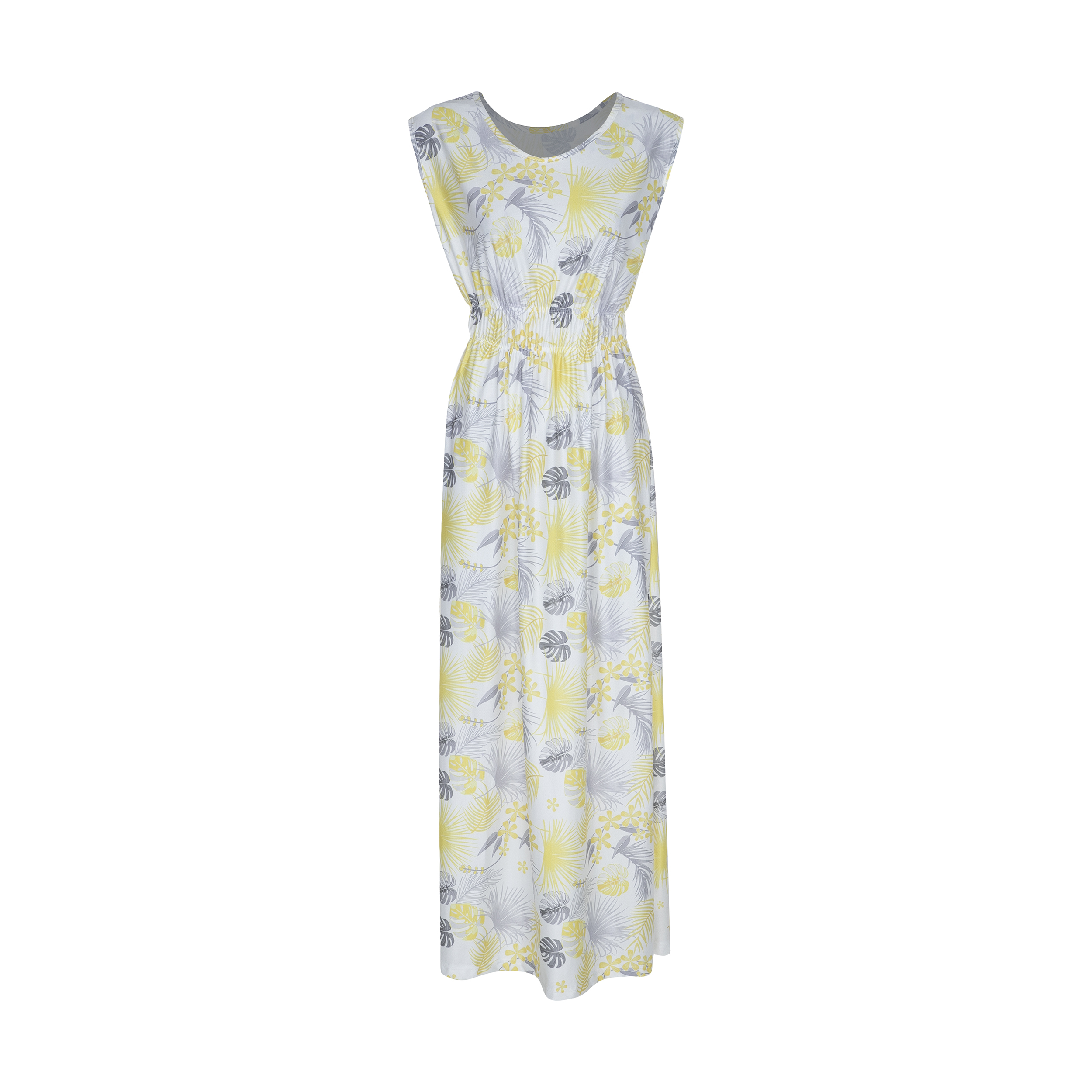 پیراهن ساحلی زنانه از جنس نخ فلامنت و آستین حلقه ای و یقه گرد بوده و کمر کش می باشد. طرح پارچه برگ و گل رنگی و قواره آژاد و مناسب استفاده روزمره و مهمانی است.