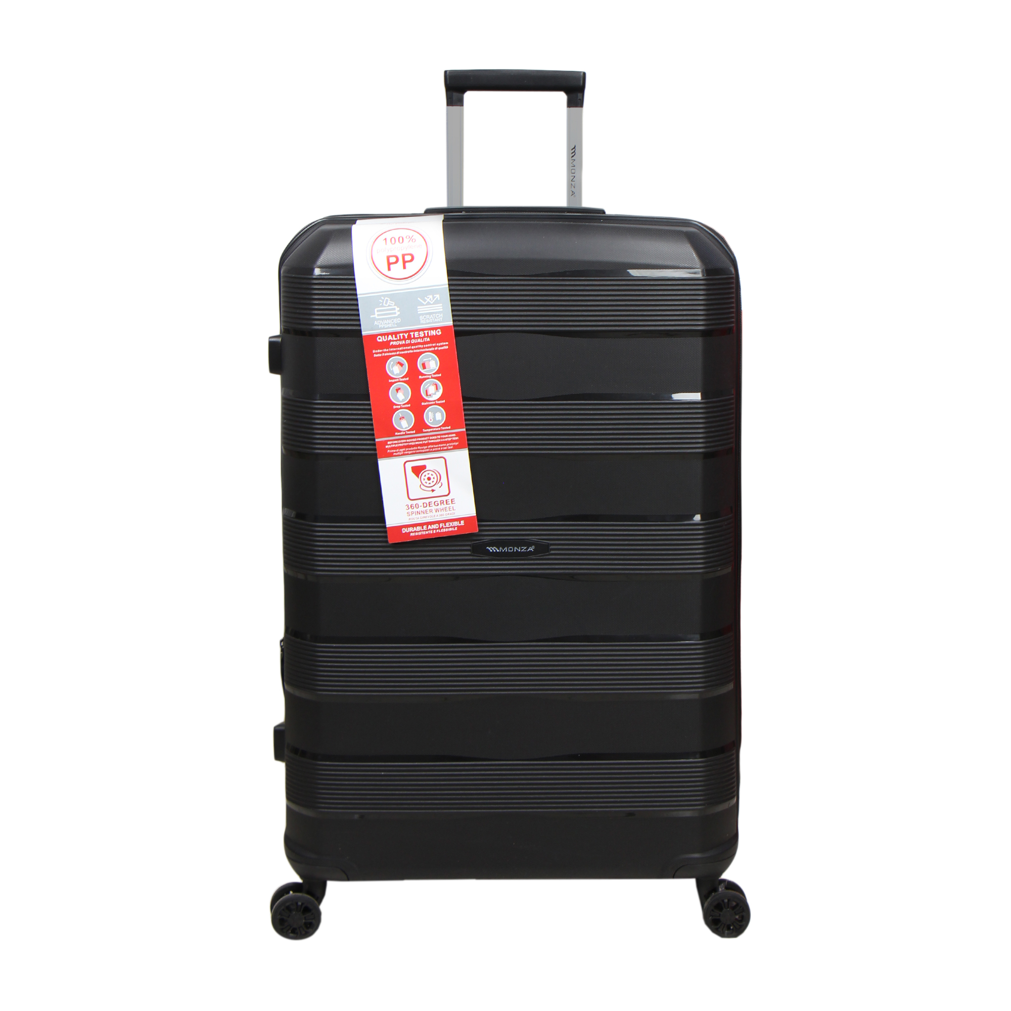 - توضیحات دستهاین چمدان شامل 2 دسته وزن کش تمام استیل میباشد. و 1 دسته کشویی با جنس استیل مقاوم برای راحت کشیدن چمدان دارد.