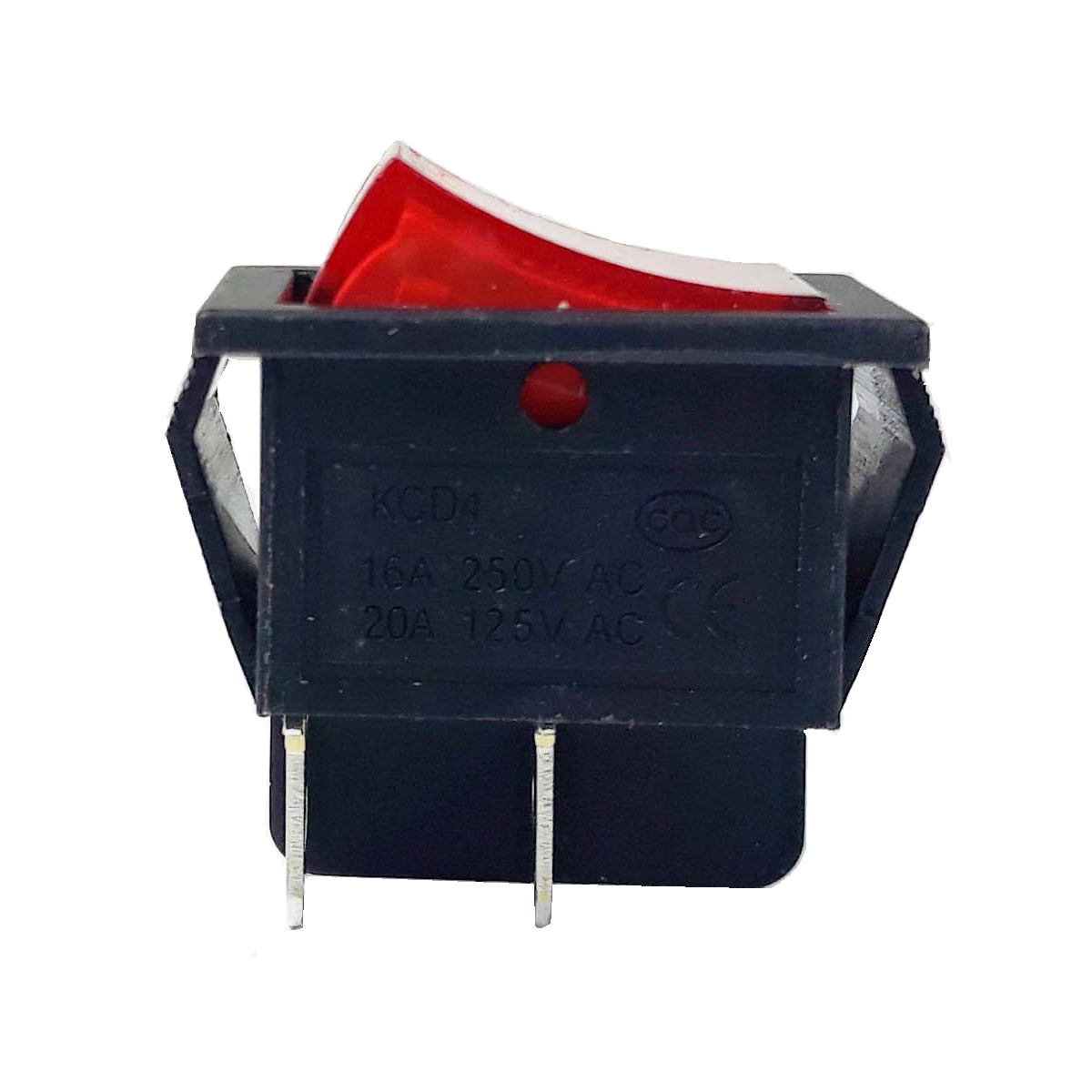 کلیدهای چراغ دار علاوه بر قطع و وصل ، برای تعیین وضعیت روشن و خاموش بودن کلید نیز کاربرد دارند.کلید چراغ دار راکر مدل ۴PIN-996 دارای چهار پین بوده و هر دو ورودی فاز و نول به کلید را قطع و وصل می کند . کلید حداکثر برای جریان ۱۶ آمپر در ولتاژ ۲۵۰ ولت طراحی شده است که معادل توان ۴۰۰۰ وات می باشد . حفره محل قرار گیری کلید به شکل مستطیل بوده و ابعاد آن ۱۸.۵ در ۲۸.۵ میلیمتر می باشد.در دو سمت کلید خار وجود دارد که باعث تثبیت در محل قرار گیری می شود. برای اتصال سیم به ۴ پین کلید از سر سیم کتابی ( فیش موسوم به کتابی ) استفاده می شود .