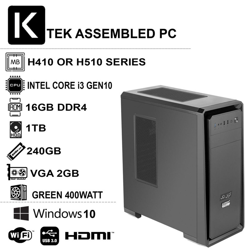 کیس اسمبل شده کران تک مدل GEN10-i3161S2 VGA2GB یک کیس کامپیوتر پرقدرت و با کیفیت که قطعات آن توسط کارشناسان شرکت کرانه رایانه ارزیابی و مونتاژ شده است و تمامی نیازهای روزمره کاربران شامل اینترنت، آفیس، برنامه نویسی، بازی و پخش انواع رسانه را بر طرف می کند. مادربرد این سیستم مدل H410 یا H510 از برند با کیفیت ایسوس یا گیگابایت انتخاب شده که دارای چهار پورت SATA3 می باشد. این رایانه دارای پردازندهCORE i3 GEN 10 INTEL نسل که شامل ۴ هسته پردازشی و فرکانس ۴.۳ گیگاهرتز و حافظه رم ۱۶ گیگ از نوع DDR4 می باشد. درایو نوری نصب شده برای خواندن و نوشتن اطلاعات بر روی DVD و پاور GP400A از برند گرین بر روی این سیستم نصب شده است. حافظه هارددیسک ۱ ترابایت و SSD 240GB نصب شده بر روی این سیستم سرعت فوق العاده ای به آن خواهد بخشید. کارت گرافیک نصب شده بر روی این کیس از نوع GEFORCE 2GB بوده و برای انجام کارهای گرافیکی و نرم افزارهایی از قبیل After Effect و بازی های متوسط مناسب می باشد. ضمنا بر روی این دستگاه دانگل یا WIFI PCI نصب شده تا امکان دستیابی به نت پرسرعت در اختیار کاربران به سهولت انجام پذیرد. سیستم عامل نصب شده بر روی این کیس windows10 می باشد. ضمنا در صورت داشتن هر گونه سوال در قسمت پرسش، پاسخ مناسب در اسرع وقت داده خواهد شد.