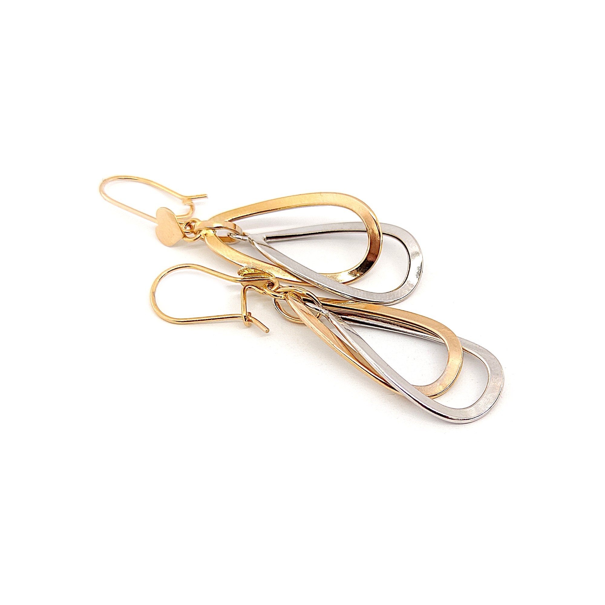 گوشواره لوکس از طلای ۱۸ عیار ساخته شده و برای جلوه بیشتر رنگ سفید در کنار طلایی در آن به کار رفته است ، این گوشواره وزن مناسبی به نسبت نما دارد و برای بانوان و دختران قابل استفاده است ، به منظور رفاه مشتریان فاکتور خرید برای مشتری به همراه کالا ارسال می شود .