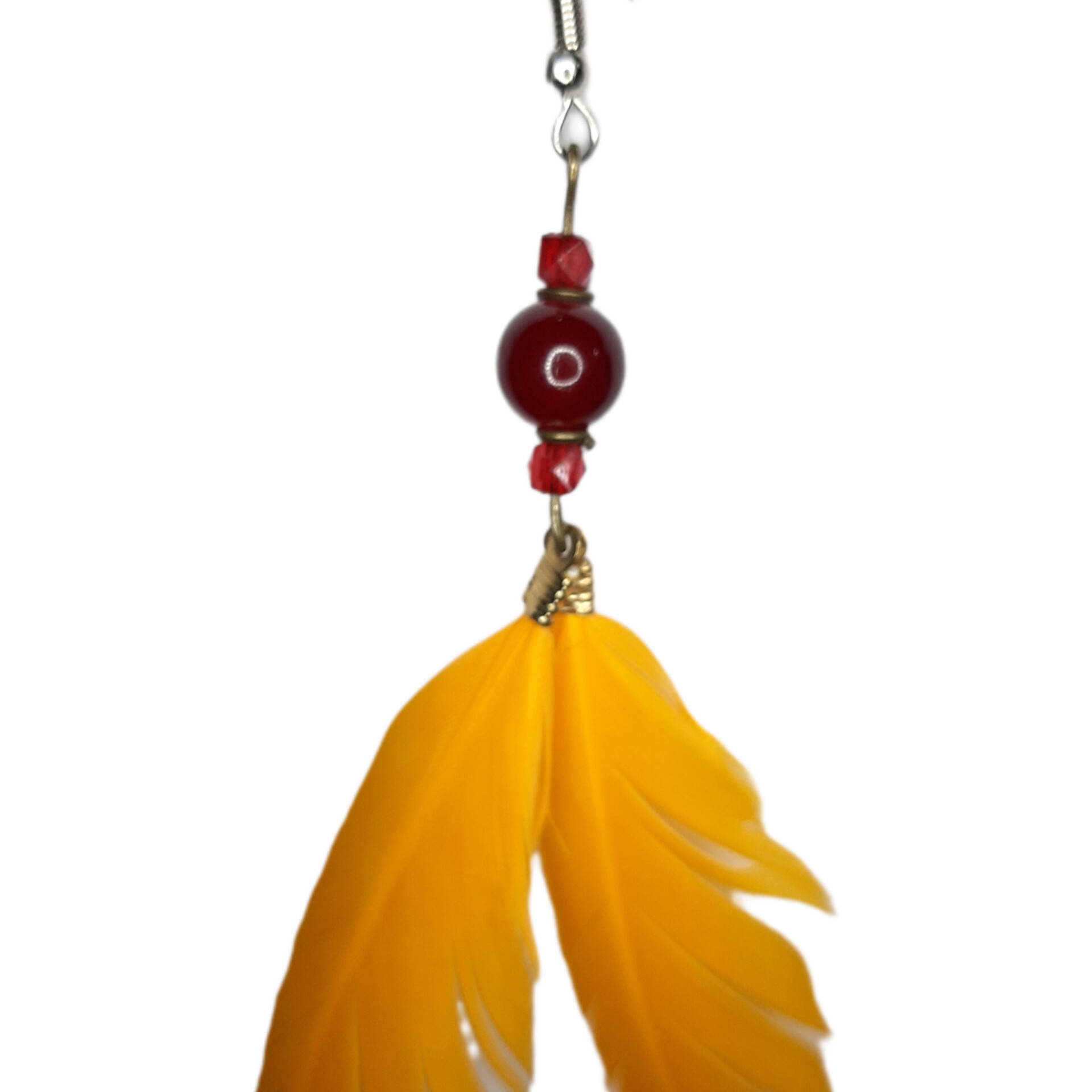گوشواره دستساز زنانه مدل آویز طرح پر طبیعی کد 00159