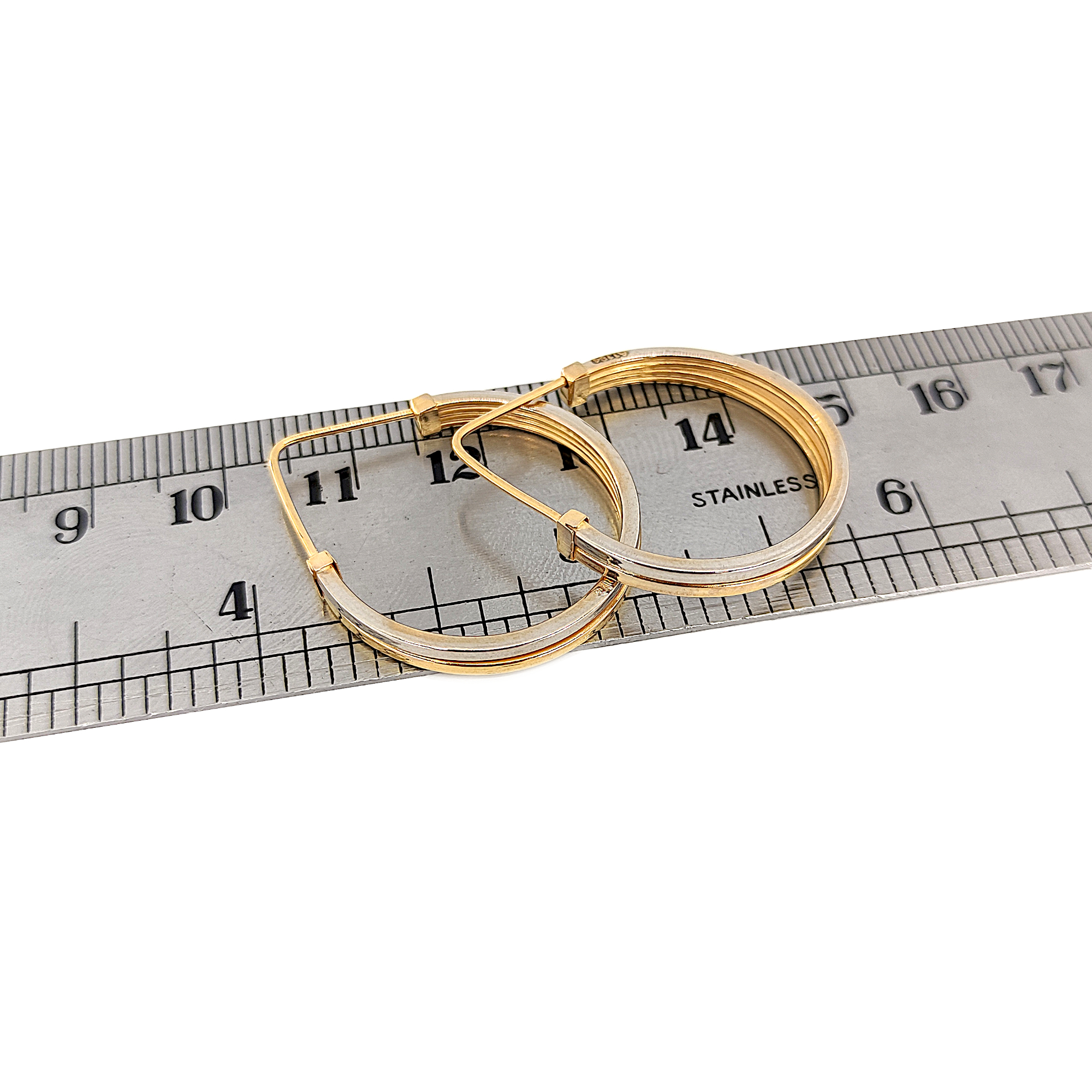 گوشواره حلقه ای از طلای ۱۸ عیار ساخته شده و برای جلوه بیشتر یک سمت آن طلایی و سمت دیگر سفید رنگ است ، این گوشواره وزن بسیار مناسبی دارد و برای سنین پایین تر نیز قابل استفاده می باشد