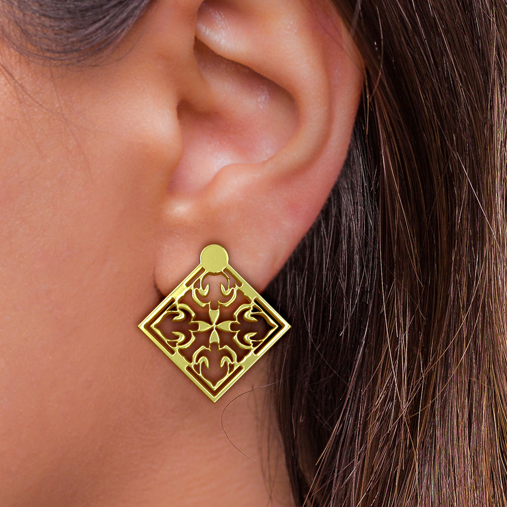 گوشواره طلا 18 عیار زنانه مدوپد مدل اسلیمی کد GA1-10388