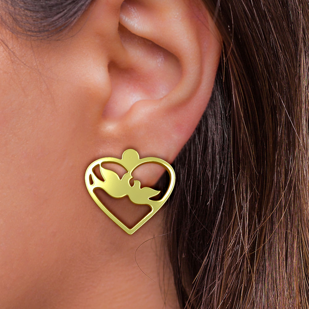 گوشواره طلا 18 عیار زنانه مدوپد مدل قلب و پرنده کد GA1-11048